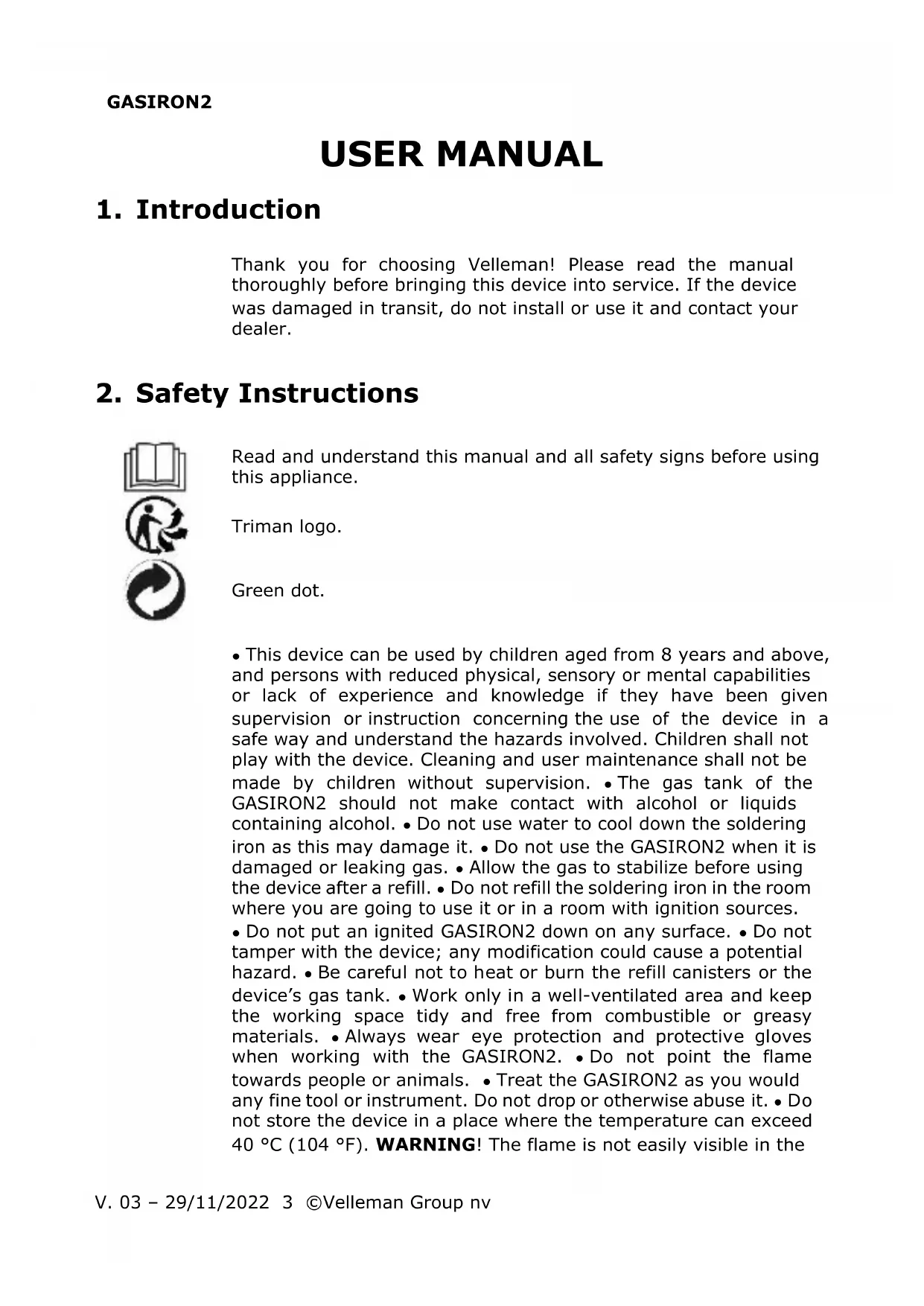 V. 03 – 29/11/2022 4 ©Velleman Group nv