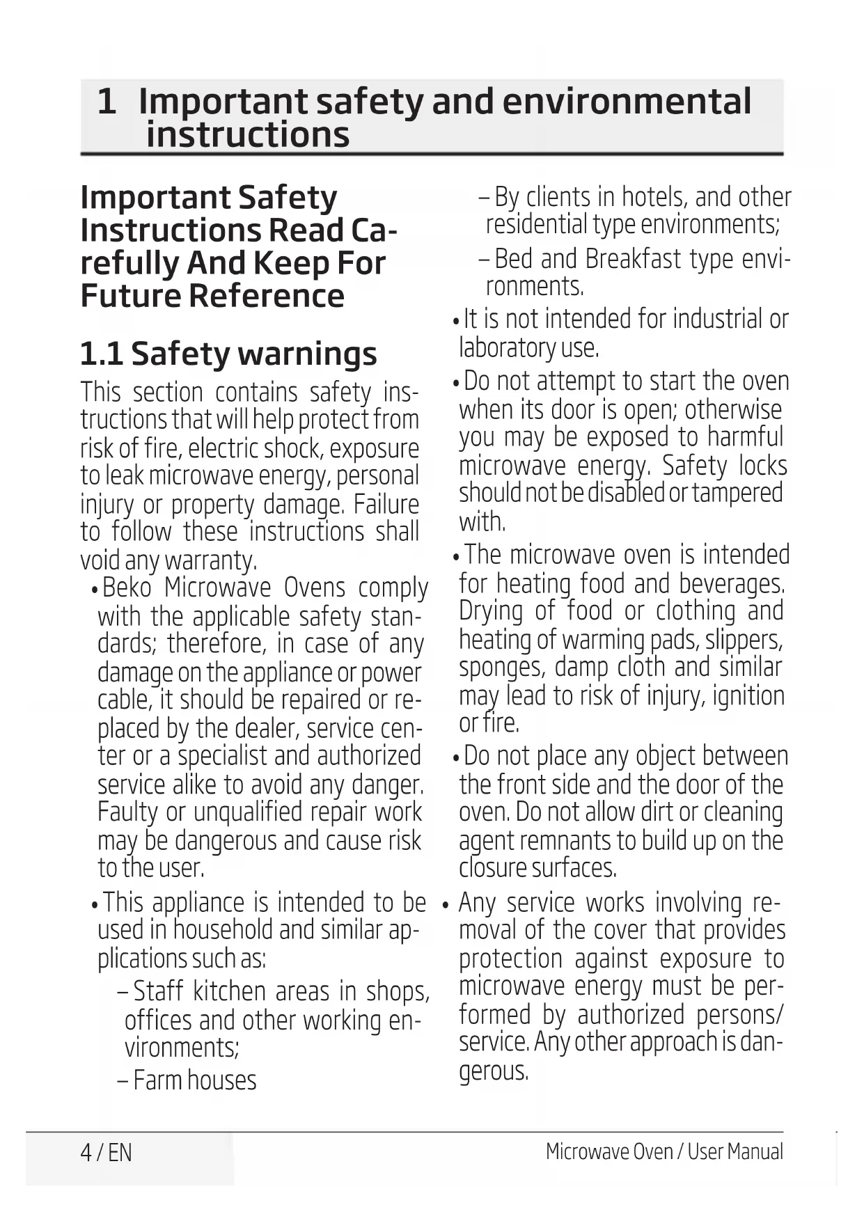 - Extreme caution is advised when being used near children and per- sons who are restricted in their physical, sensory or mental abili- ties. 1 Important safety and environmental instructionsMicrowave Oven / User Manual 8 / EN