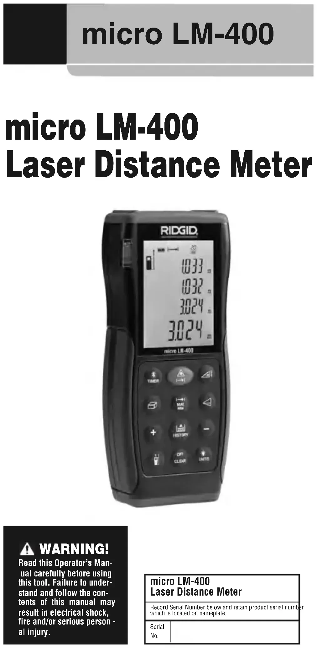 Micro LM400 - Measuring equipment RIDGID - Free user manual and instructions