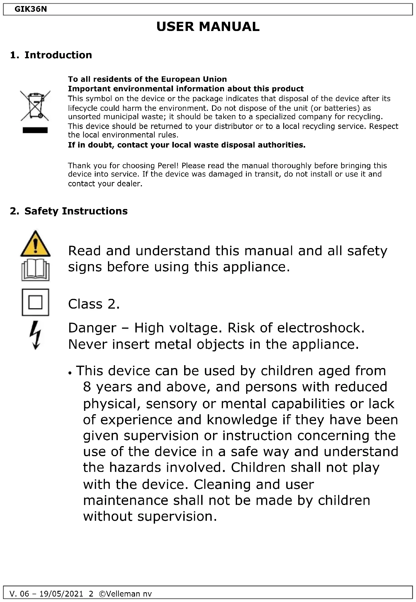 Download the instructions for your Pest control in PDF format for free! Find your manual GIK36N - Perel and take your electronic device back in hand. On this page are published all the documents necessary for the use of your device. GIK36N by Perel.