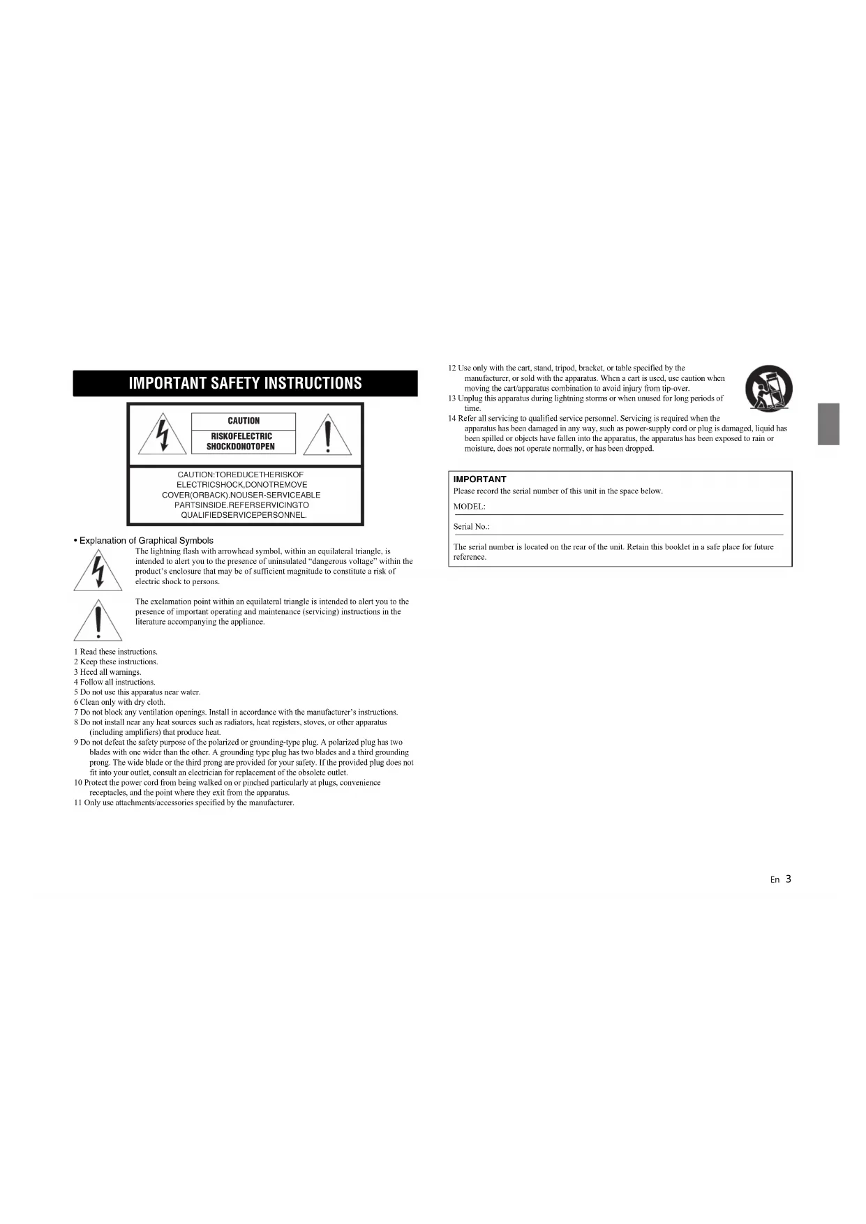 IMPORTANT Please record the serial number of this unit in the space below. MODEL: Serial No.: The serial number is located on the rear of the unit. Retain this booklet in a safe place for future reference.4 En