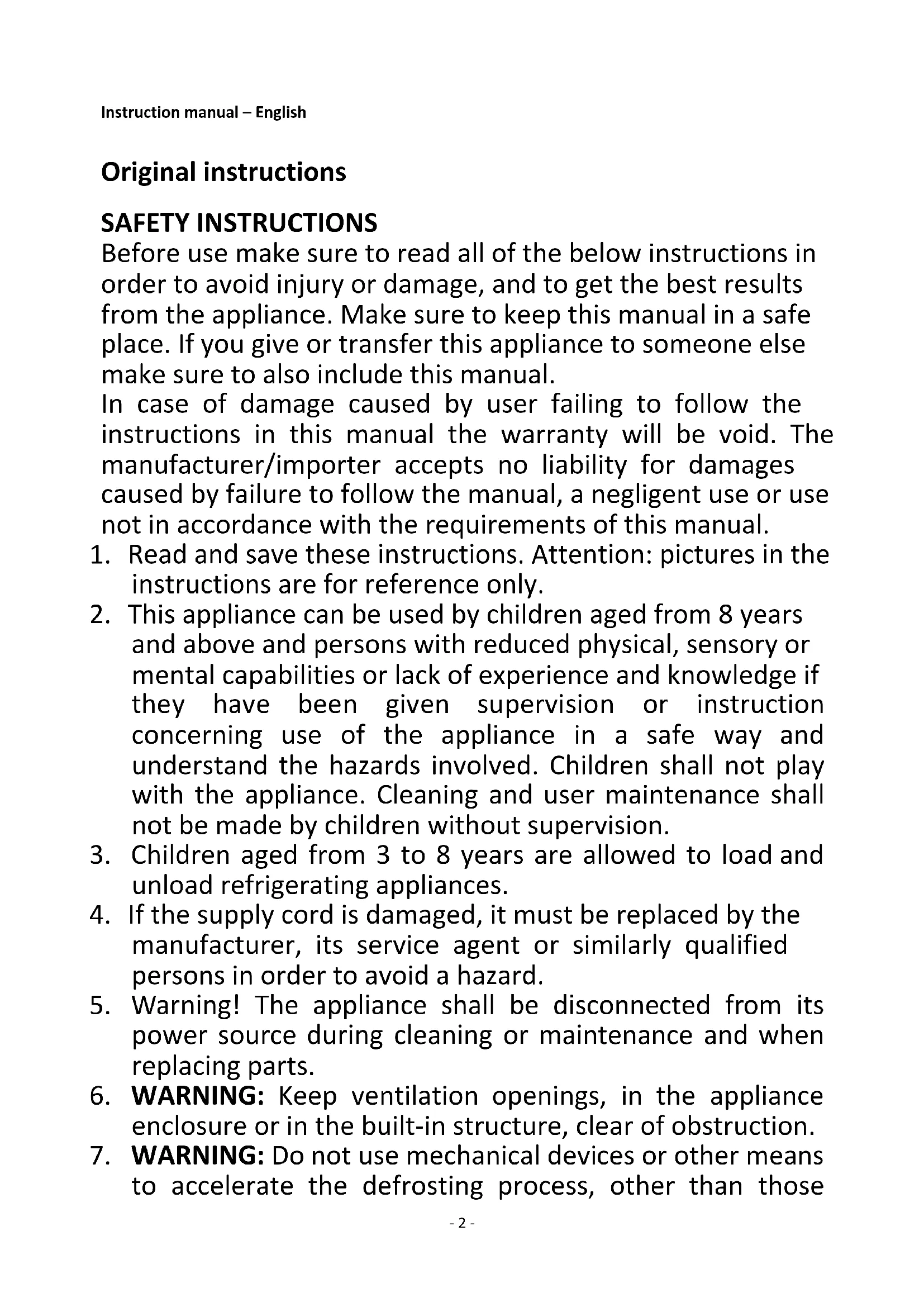 handling, use, servicing, replacement of lamp (if applicable), cleaning and disposal of the appliance, thanks to refer to the below paragraph of the manual.- 7 -