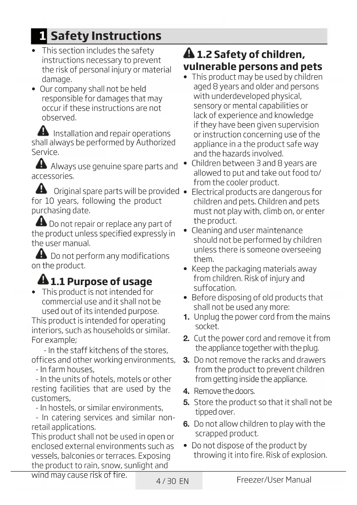 - Do not dispose of the product by throwing it into fire. Risk of explosion.5 / 30 EN Freezer/User Manual Safety instructions
