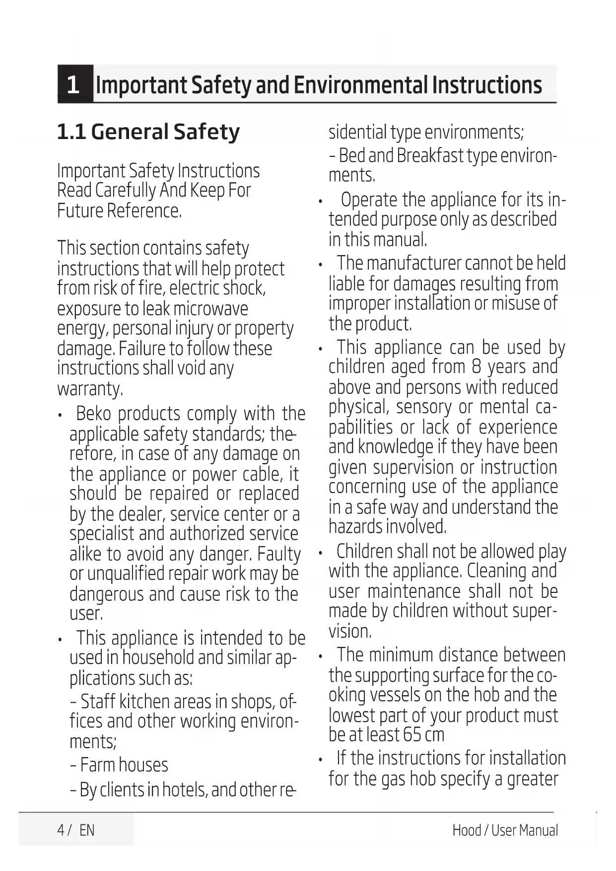 Important Safety and Environmental Instructions5 / EN Hood / User Manual distance, this has to be taken into account.