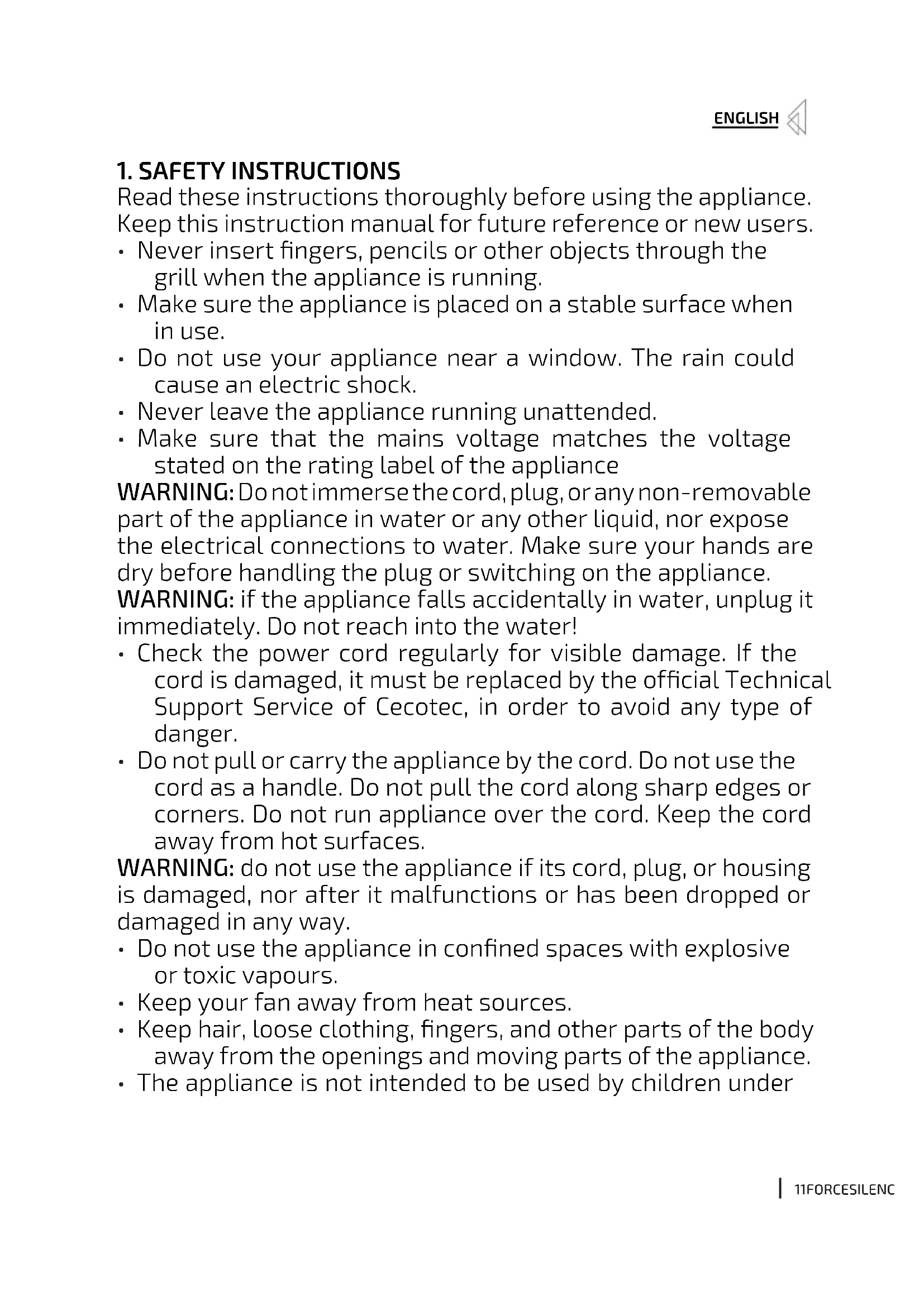 Download the instructions for your Fan in PDF format for free! Find your manual EnergySilence 580 RetroDesk - CECOTEC and take your electronic device back in hand. On this page are published all the documents necessary for the use of your device. EnergySilence 580 RetroDesk by CECOTEC.