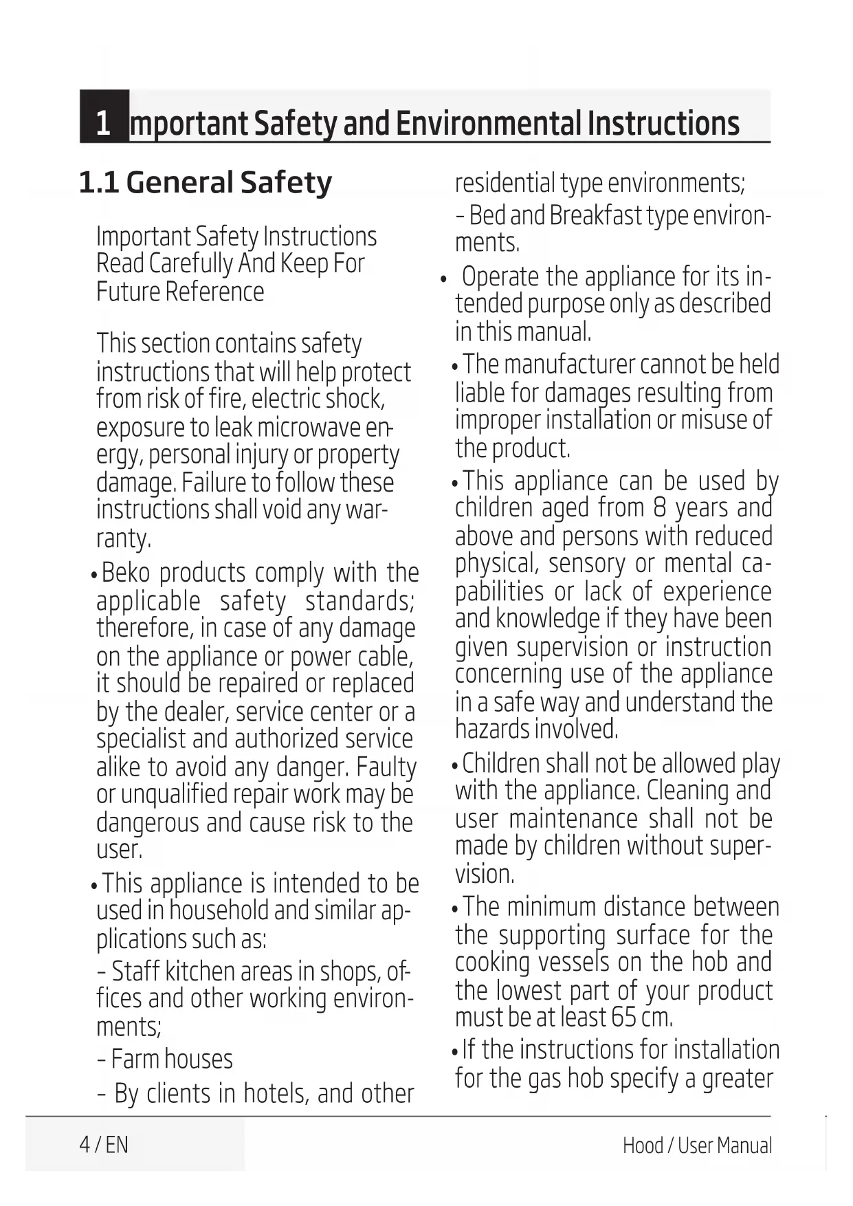 Important Safety and Environmental Instructions6 / EN Hood / User Manual and cooking appliances.