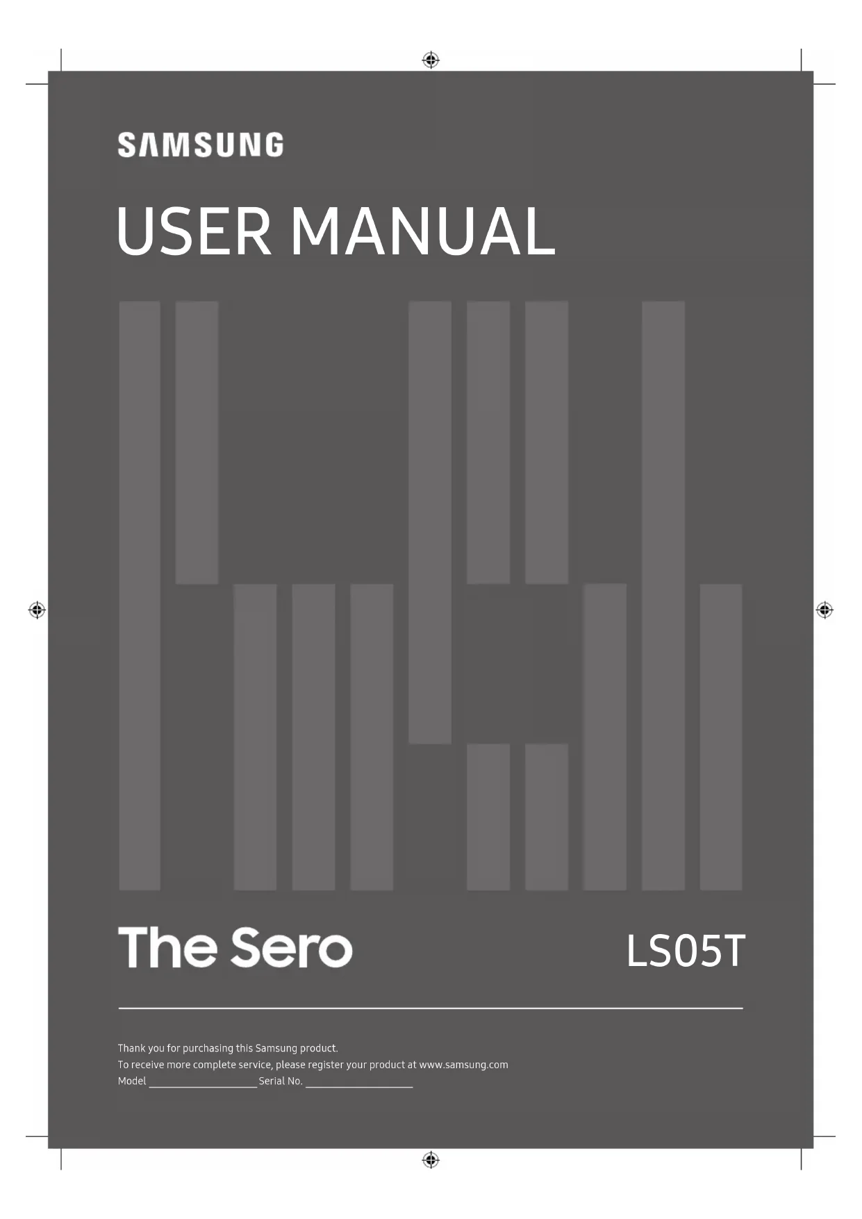 Thank you for purchasing this Samsung product. To receive more complete service, please register your product at www.samsung.com Model Serial No. USER MANUAL LS05TEnglish - 2 Before Reading This User Manual This TV comes with this user manual and an embedded e-Manual. Before reading this user manual, review the following: User Manual Read this provided user manual to see information about product safety, installation, accessories, initial configuration, and product specifications. e-Manual For more information about this TV, read the e-Manual embedded in the product.