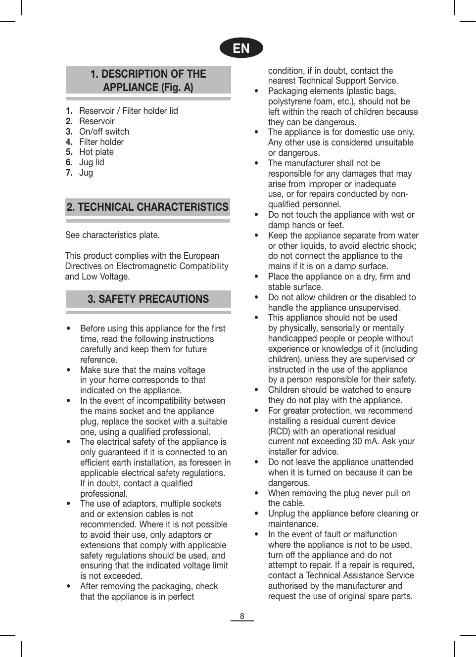 1.DESCRIPTION OF THE APPLIANCE (Fig.A)