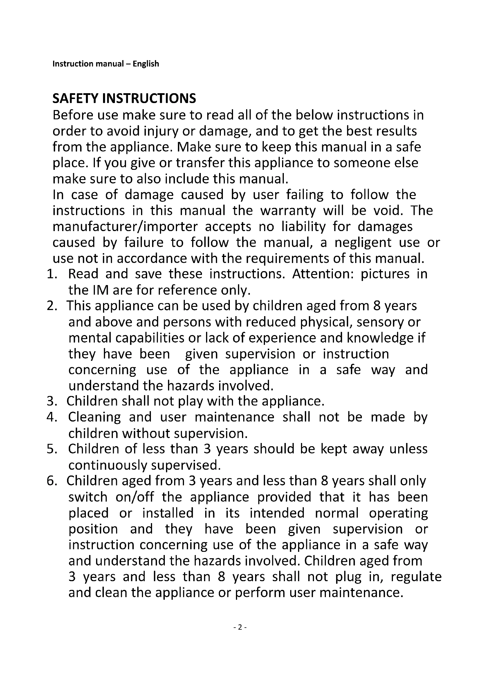 2. This appliance can be used by children aged from 8 years