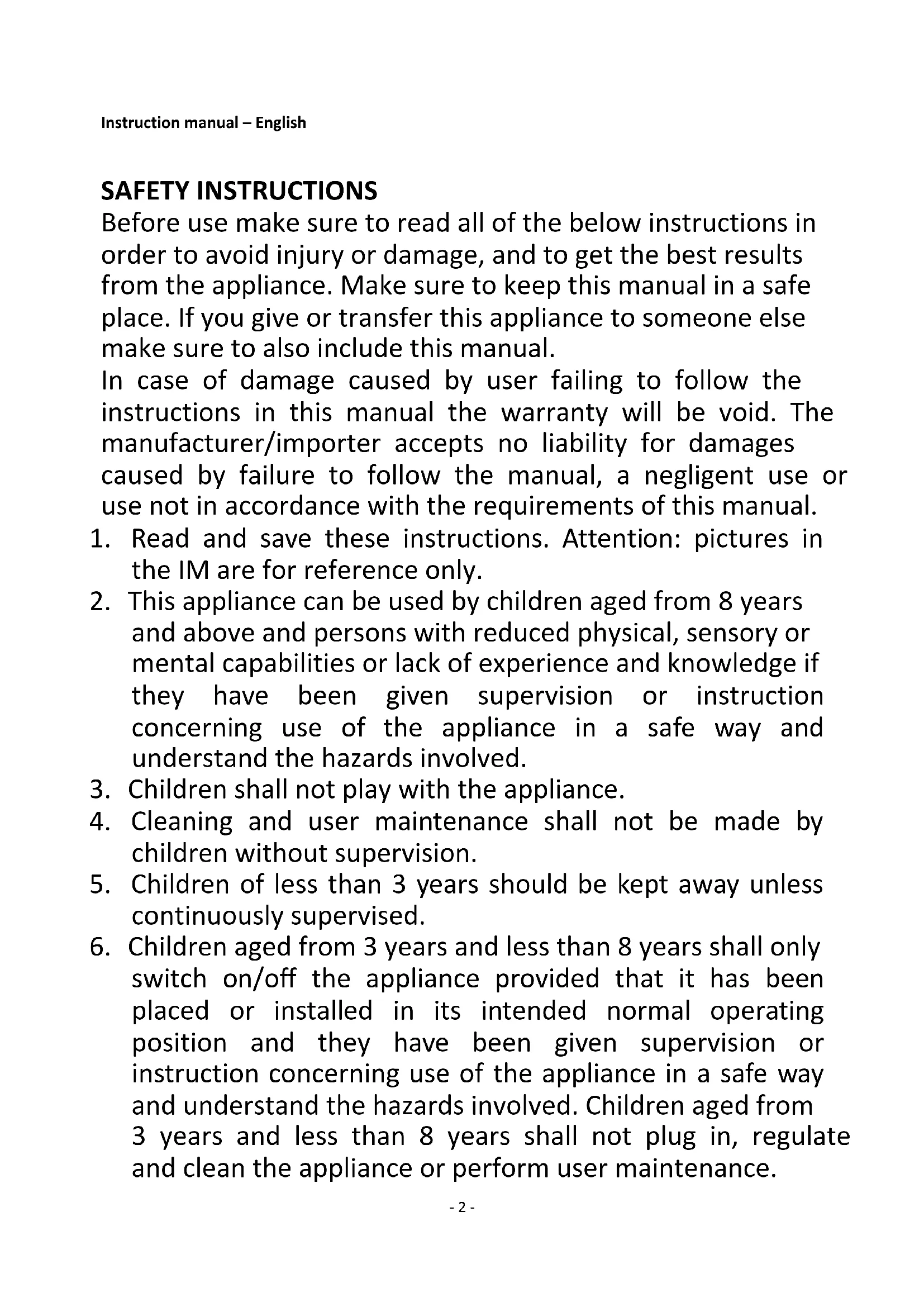 2. This appliance can be used by children aged from 8 years