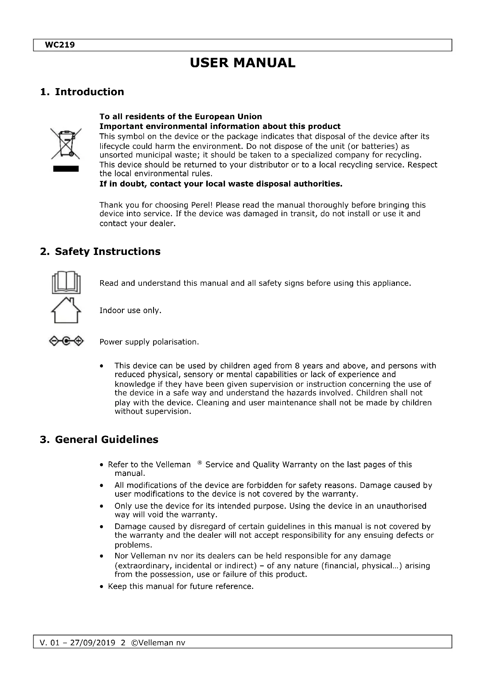 V. 01 – 27/09/2019 4 ©Velleman nv