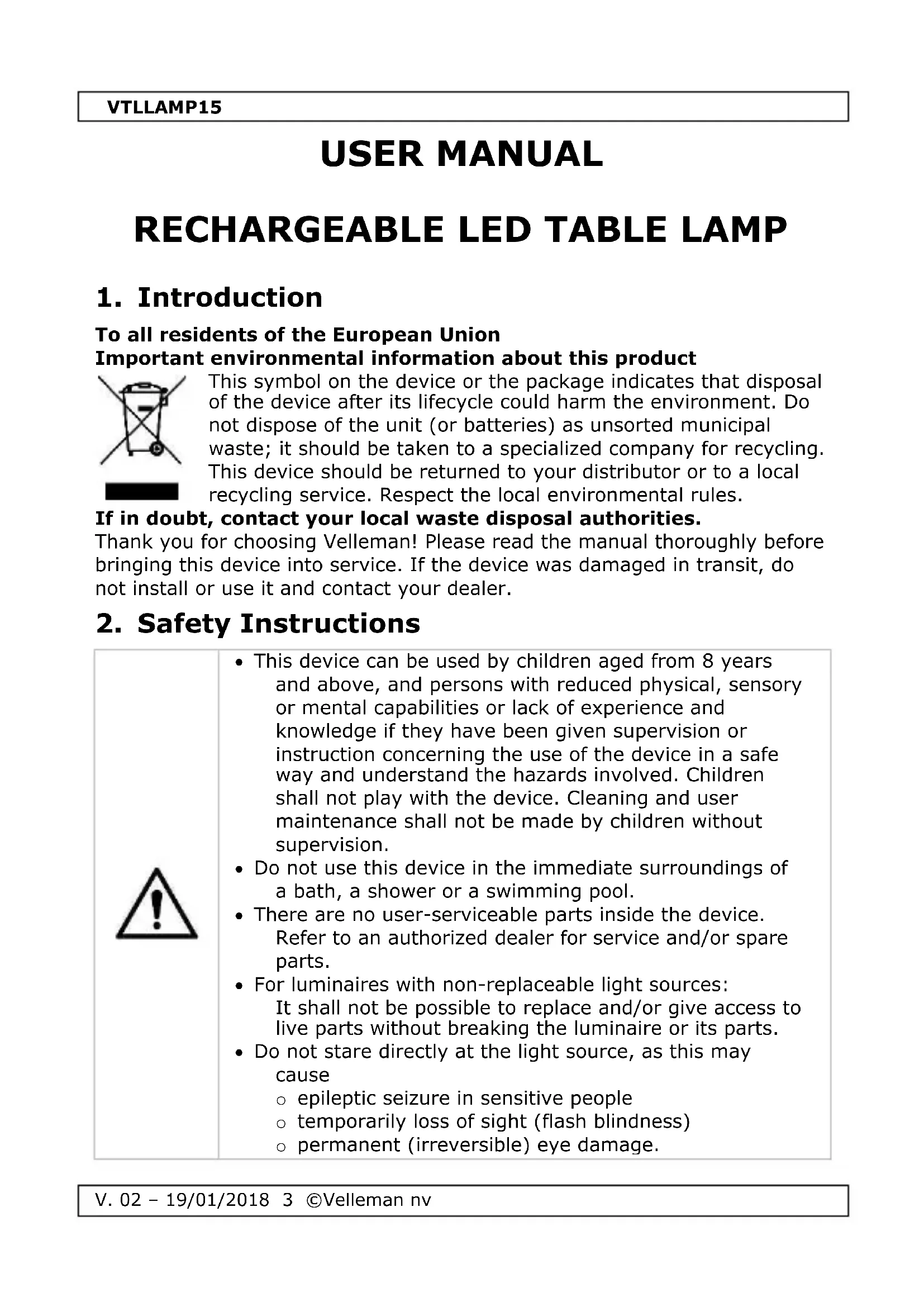 V. 02 – 19/01/2018 5 ©Velleman nv