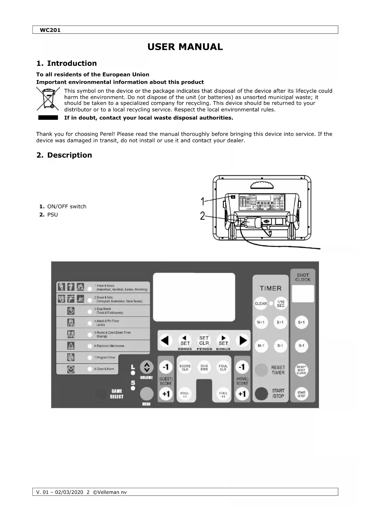 V. 01 – 02/03/2020 6 ©Velleman nv