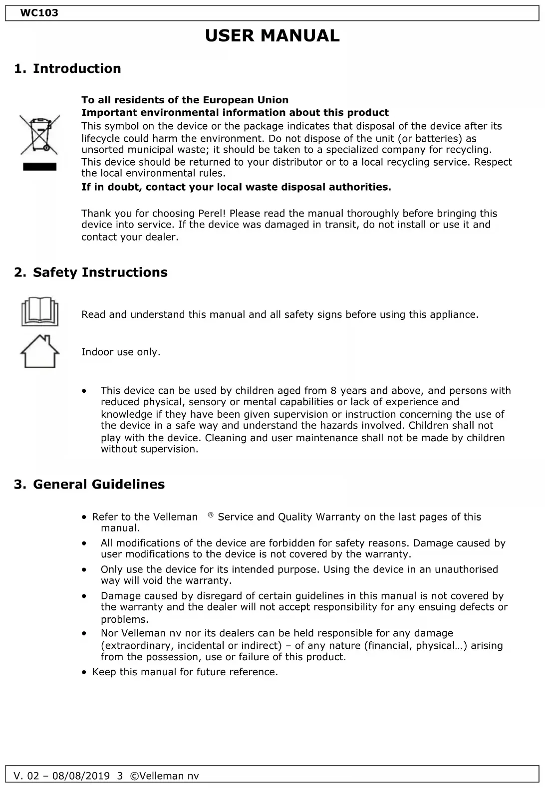 USER MANUAL WC103 Perel