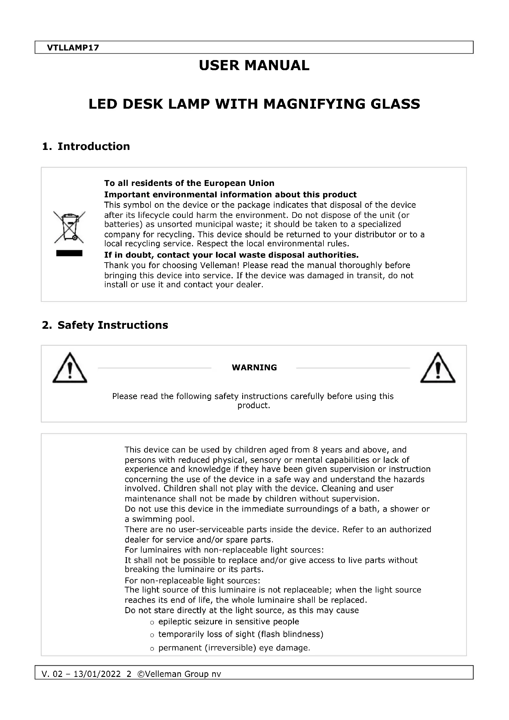 V. 02 – 13/01/2022 4 ©Velleman Group nv