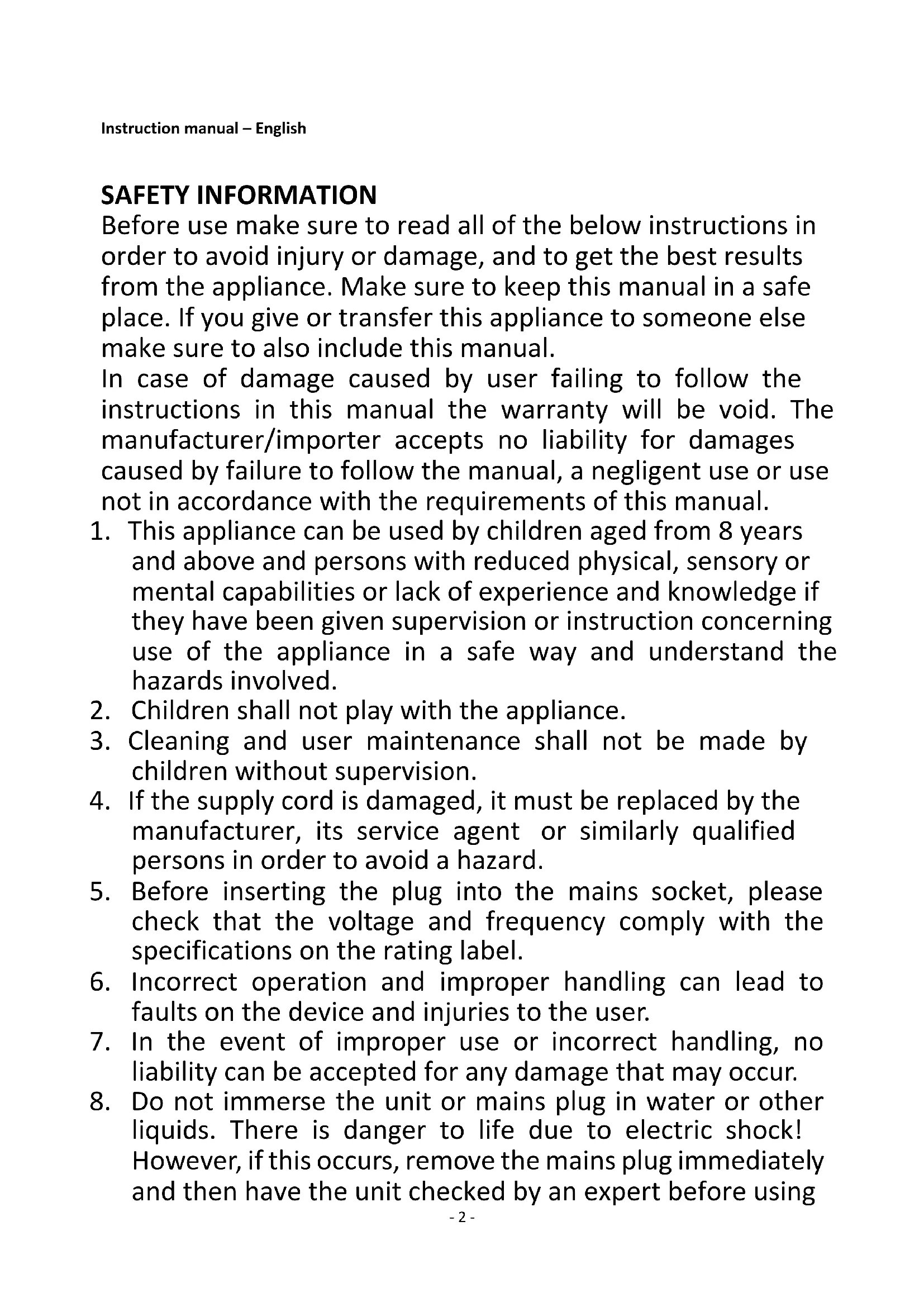 1. This appliance can be used by children aged from 8 years