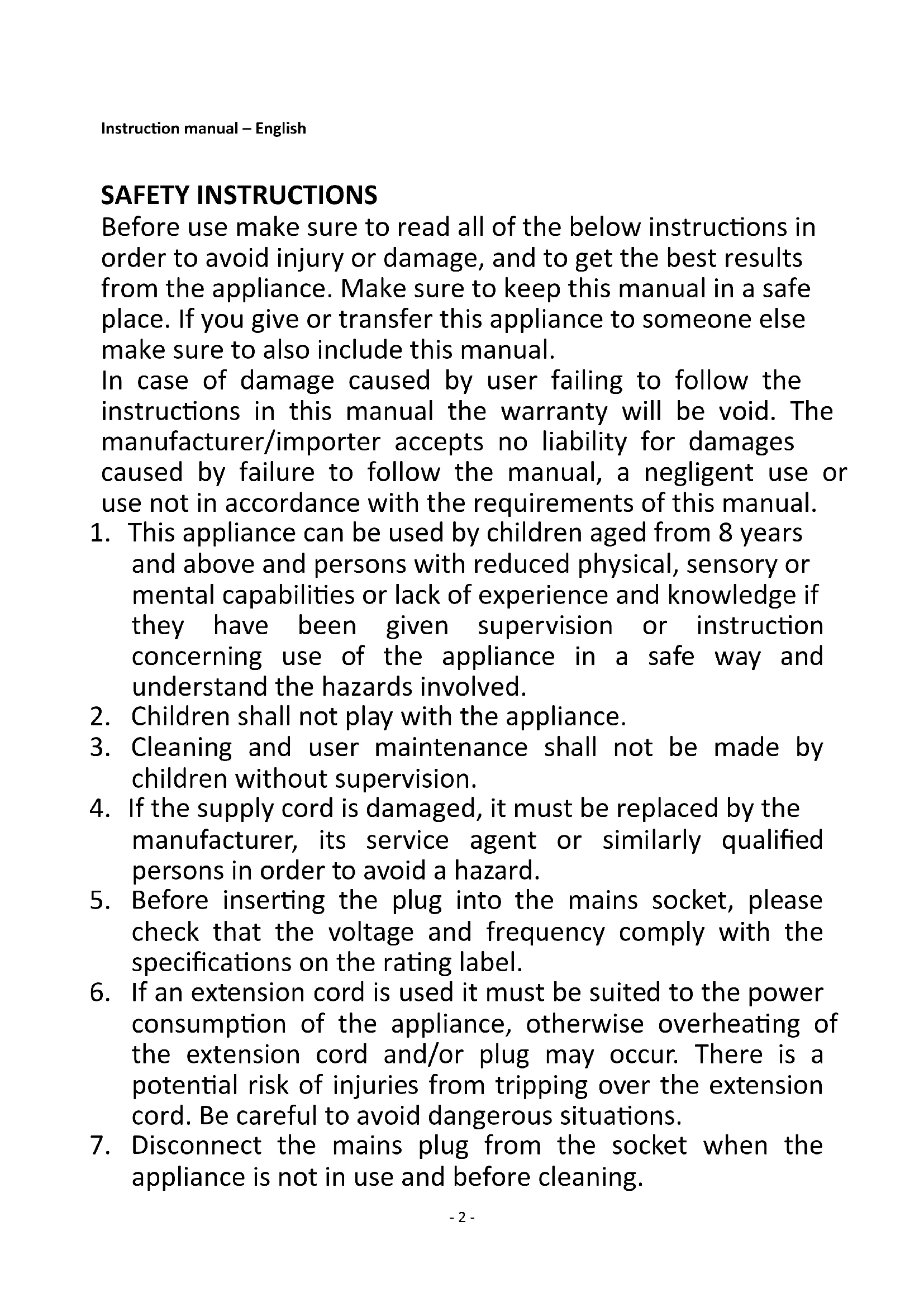 2. Children shall not play with the appliance.