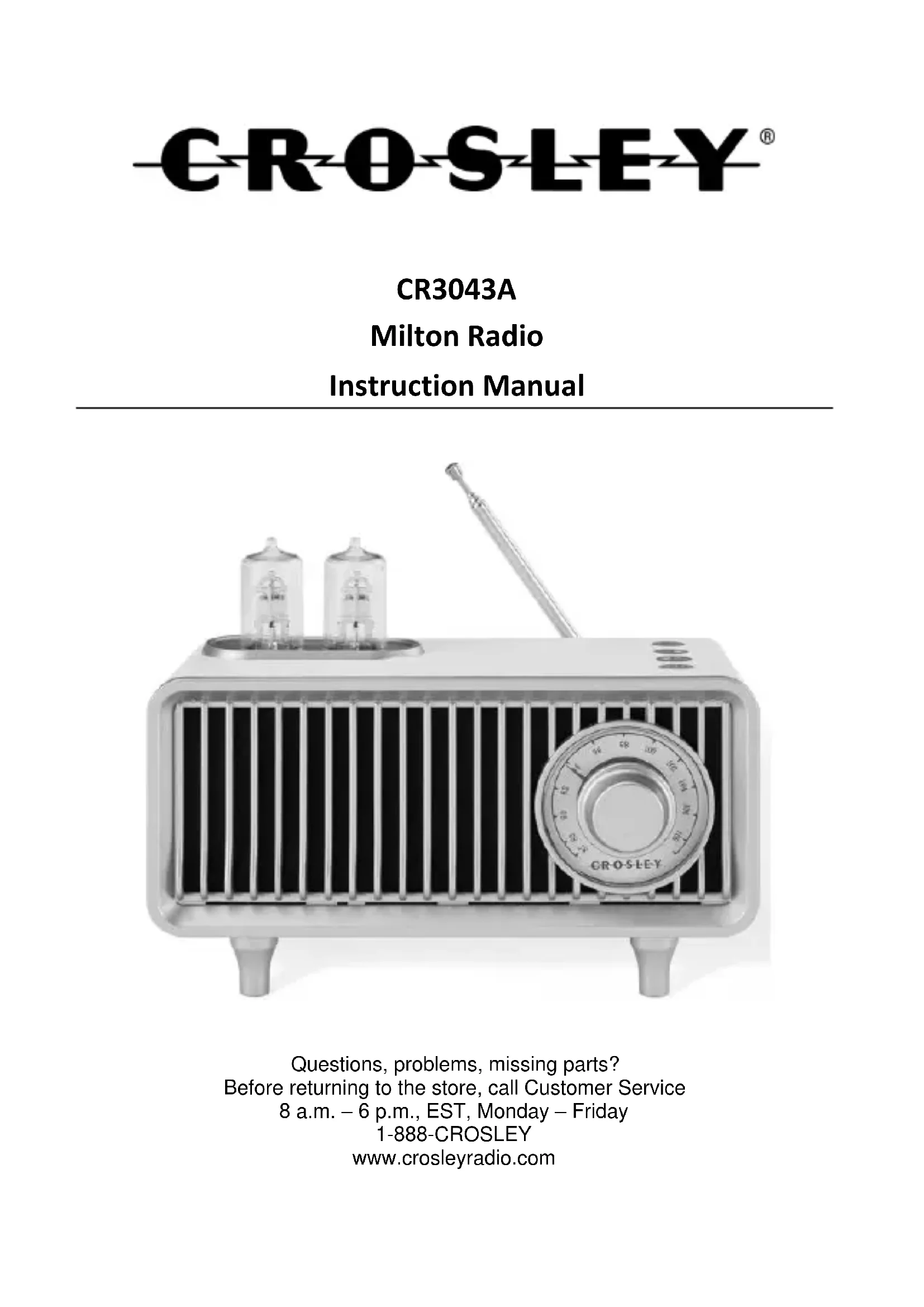 Download the instructions for your Radio in PDF format for free! Find your manual Milton CR3043A - Crosley and take your electronic device back in hand. On this page are published all the documents necessary for the use of your device. Milton CR3043A by Crosley.
