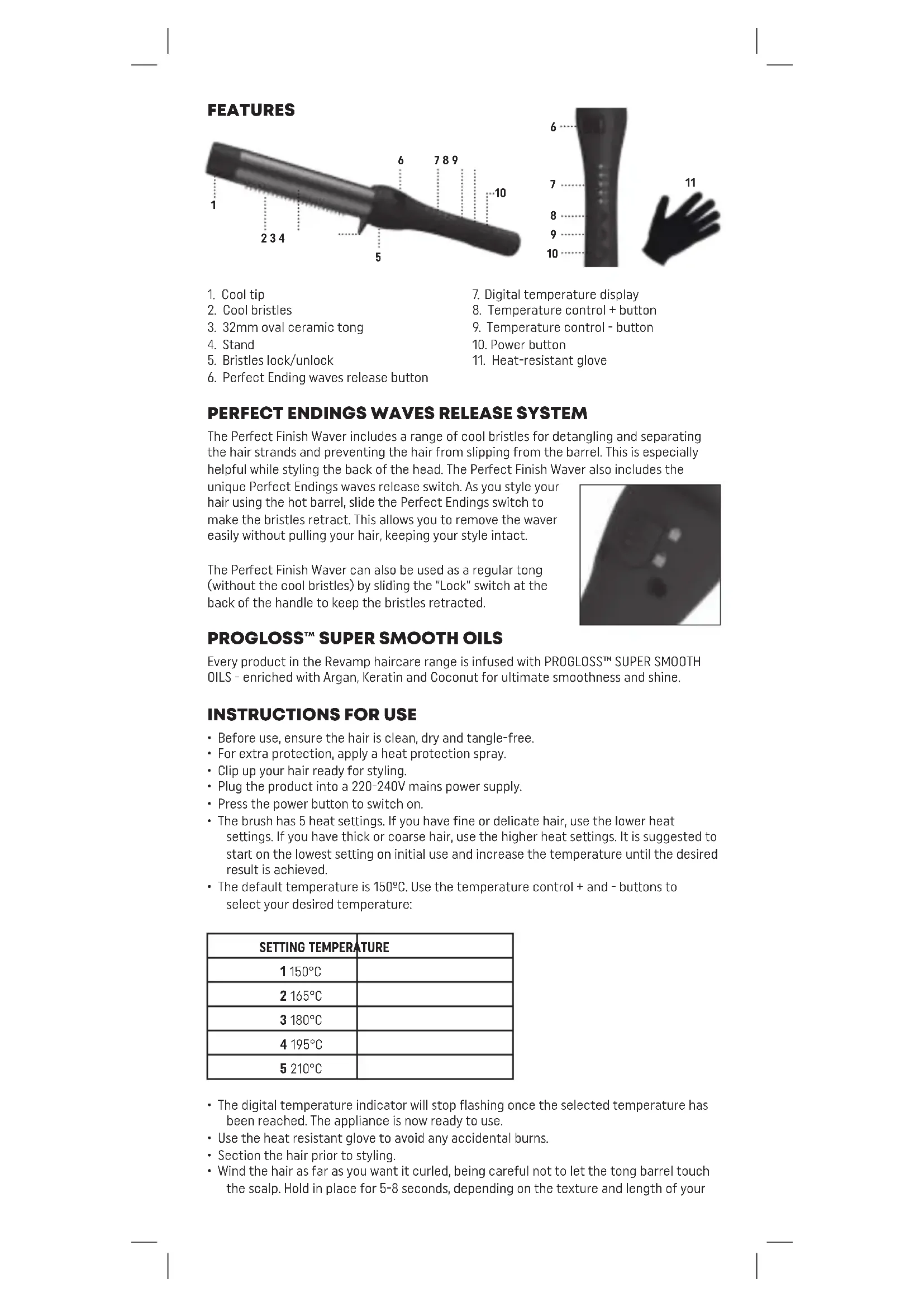 USER MANUAL Progloss Perfect Finish Waver TO1500 Revamp