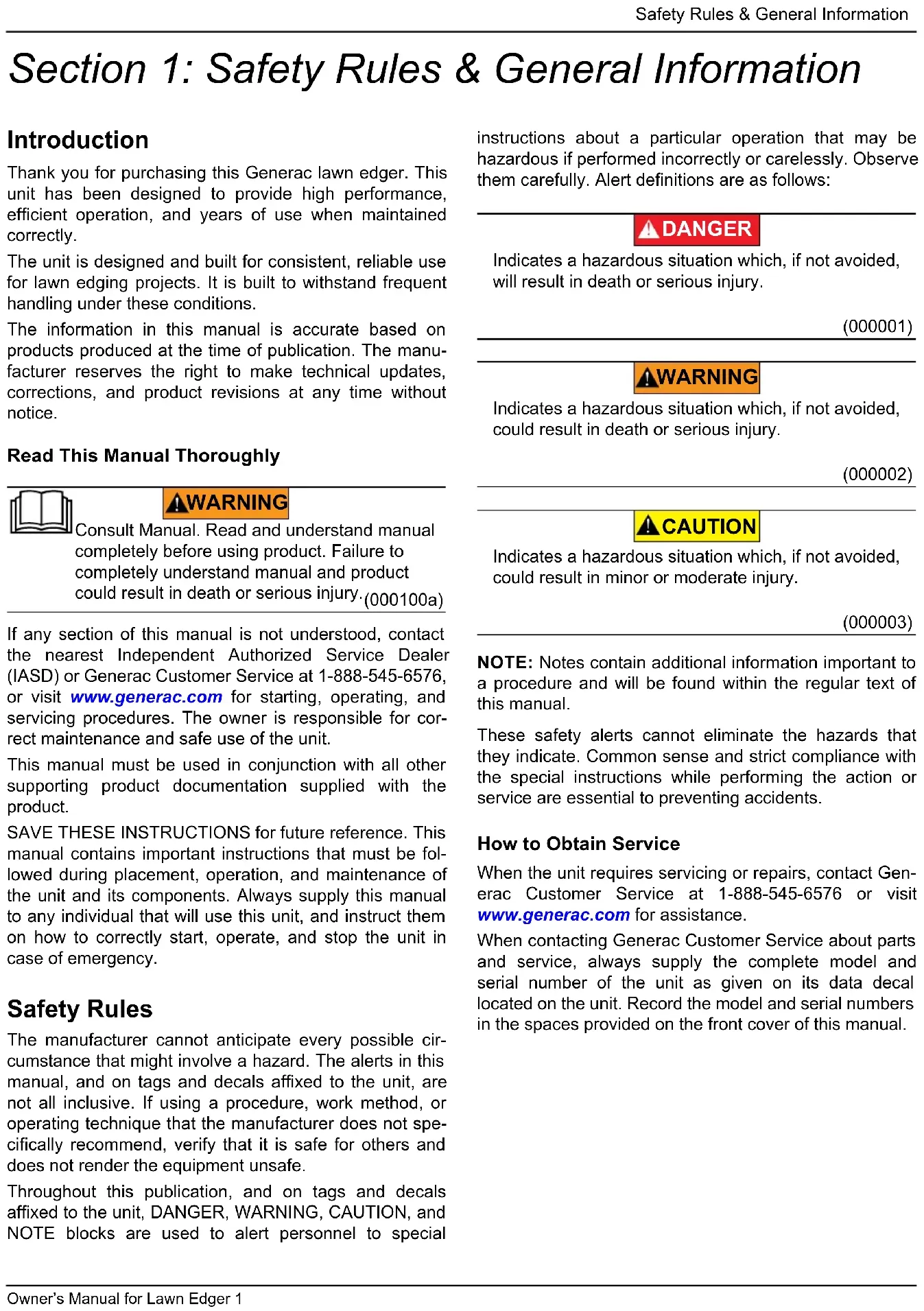 - Troubleshooting Table of Contents iv Owner’s Manual for Lawn Edger This page intentionally left blank.Safety Rules & General InformationOwner’s Manual for Lawn Edger 1 p. 15