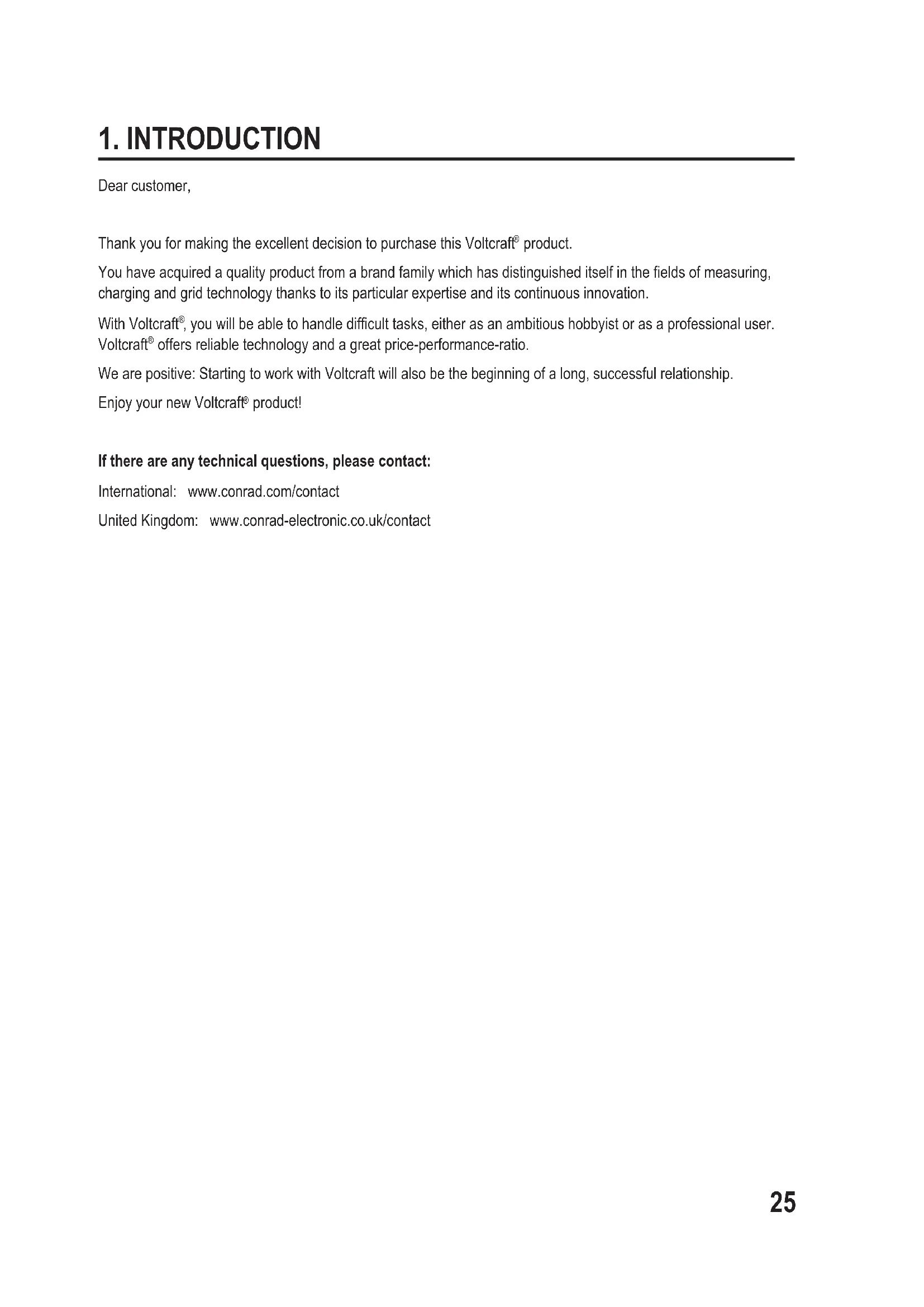product. You have acquired a quality product from a brand family which has distinguished itself in the elds of measuring, charging and grid technology thanks to its particular expertise and its continuous innovation. With Voltcraft