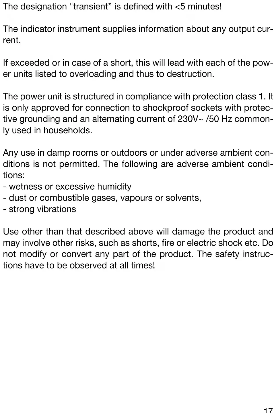 - In the case of series switching of the outputs of several power units, voltages (> 35 VDC) are generated which are dangerous if contacted. 19• Power supply units are not designed for use on human beings or animals.