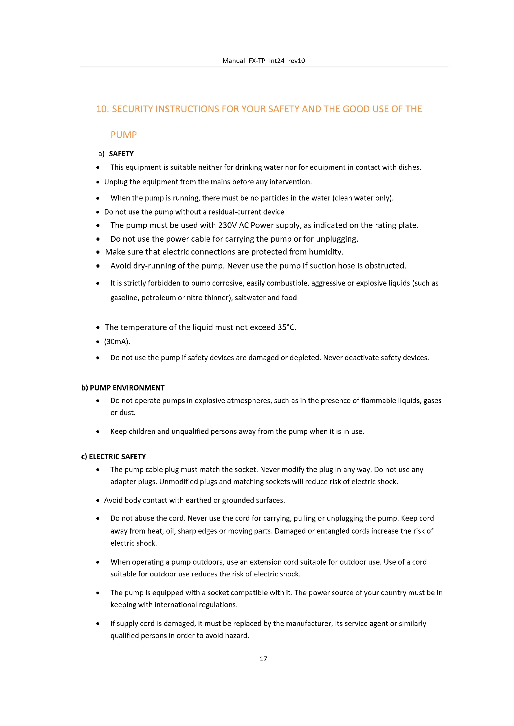 3. Make sure that no one is present in the liquid to be pumpedManual_FX-TP_Int24_rev10