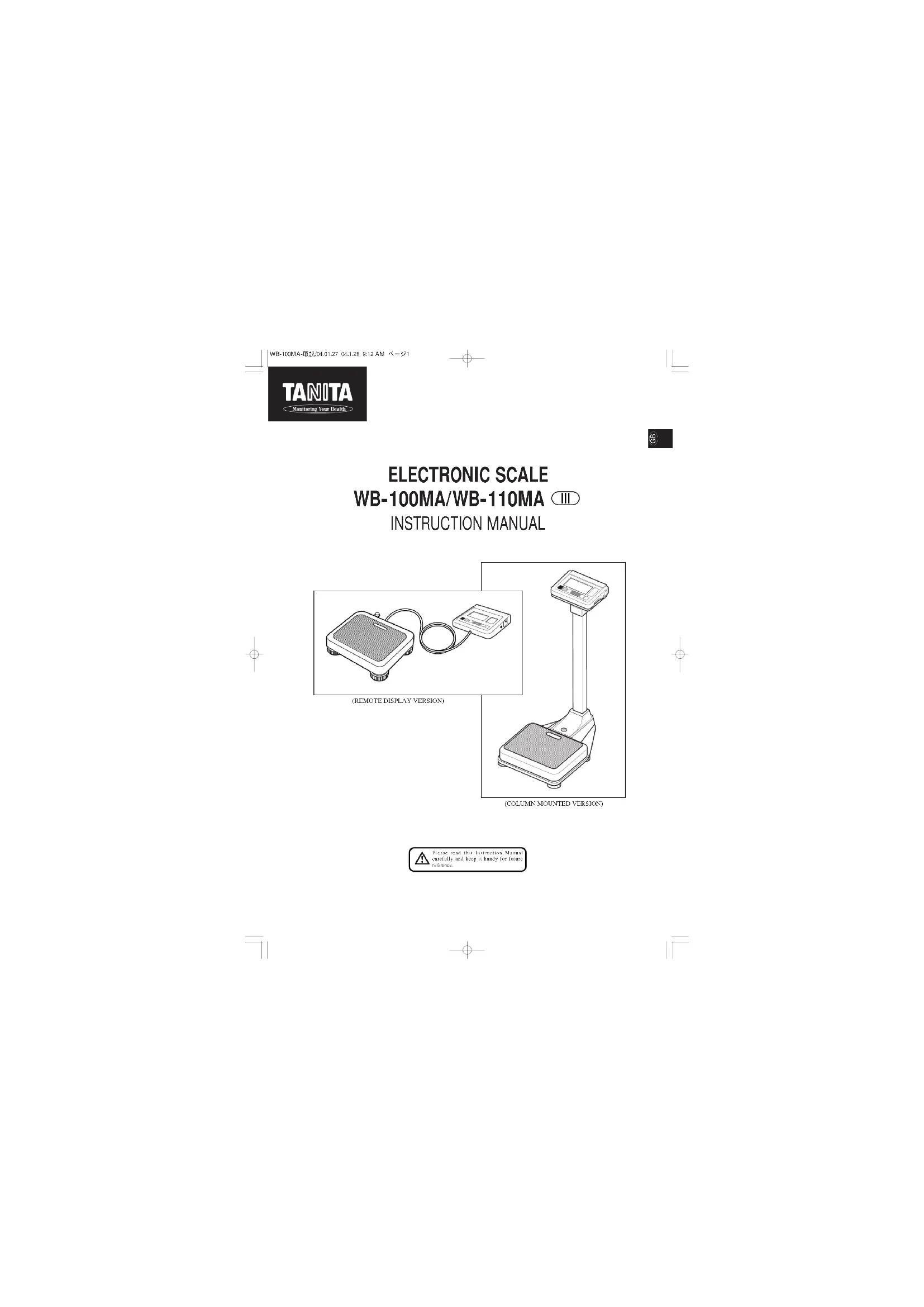 ELECTRONIC SCALE WB-100MA/WB-110MA INSTRUCTION MANUAL Please read this Instruction Manualcarefully and keep it handy for futurereference.