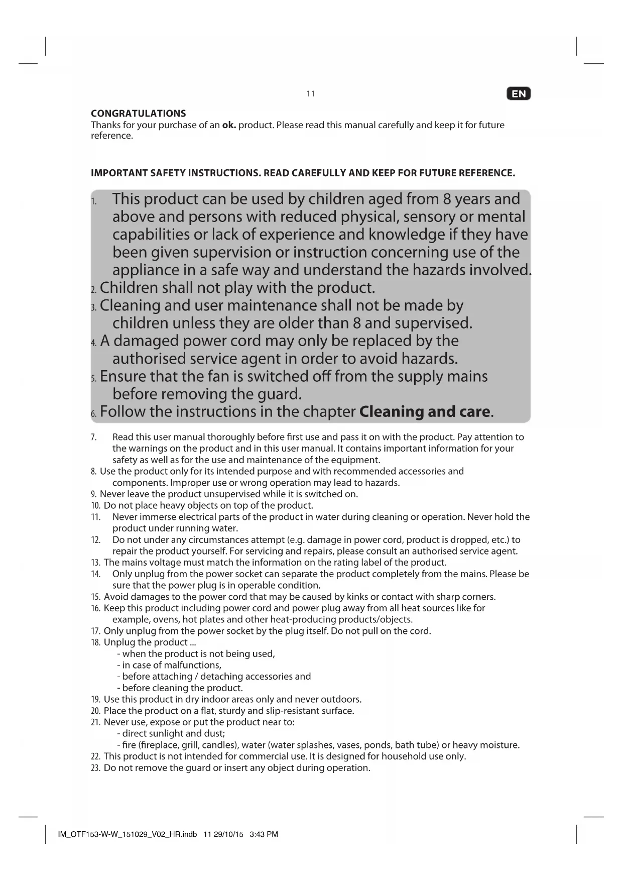 CONGRATULATIONS Thanks for your purchase of an ok. product. Please read this manual carefully and keep it for future reference. IMPORTANT SAFETY INSTRUCTIONS. READ CAREFULLY AND KEEP FOR FUTURE REFERENCE.