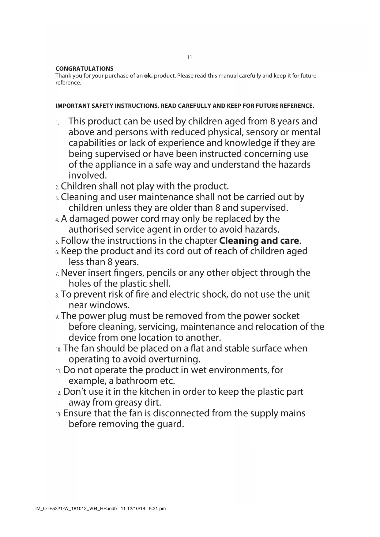 Download the instructions for your Fan in PDF format for free! Find your manual OTF 5321 W - OK and take your electronic device back in hand. On this page are published all the documents necessary for the use of your device. OTF 5321 W by OK.