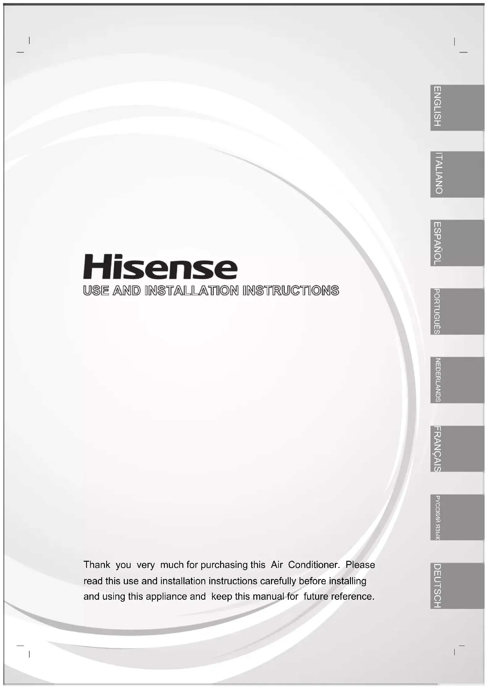 Thank you very much for purchasing this Air Conditioner. Please read this use and installation instructions carefully before installing and using this appliance and keep this manual for future reference. ENGLISH 意大利文 ESPAÑOL PORTUGUÊS NEDERLANDS FRANÇAIS РУССКИЙ ЯЗЫК DEUTSCH ITALIANO1