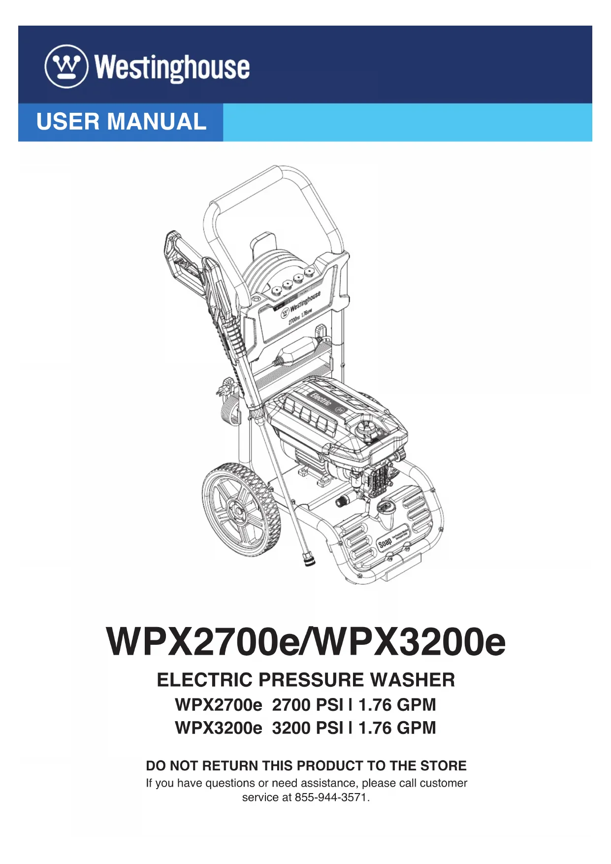 DO NOT RETURN THIS PRODUCT TO THE STORE If you have questions or need assistance, please call customer service at 855-944-3571. USER MANUAL WPX2700e/WPX3200e