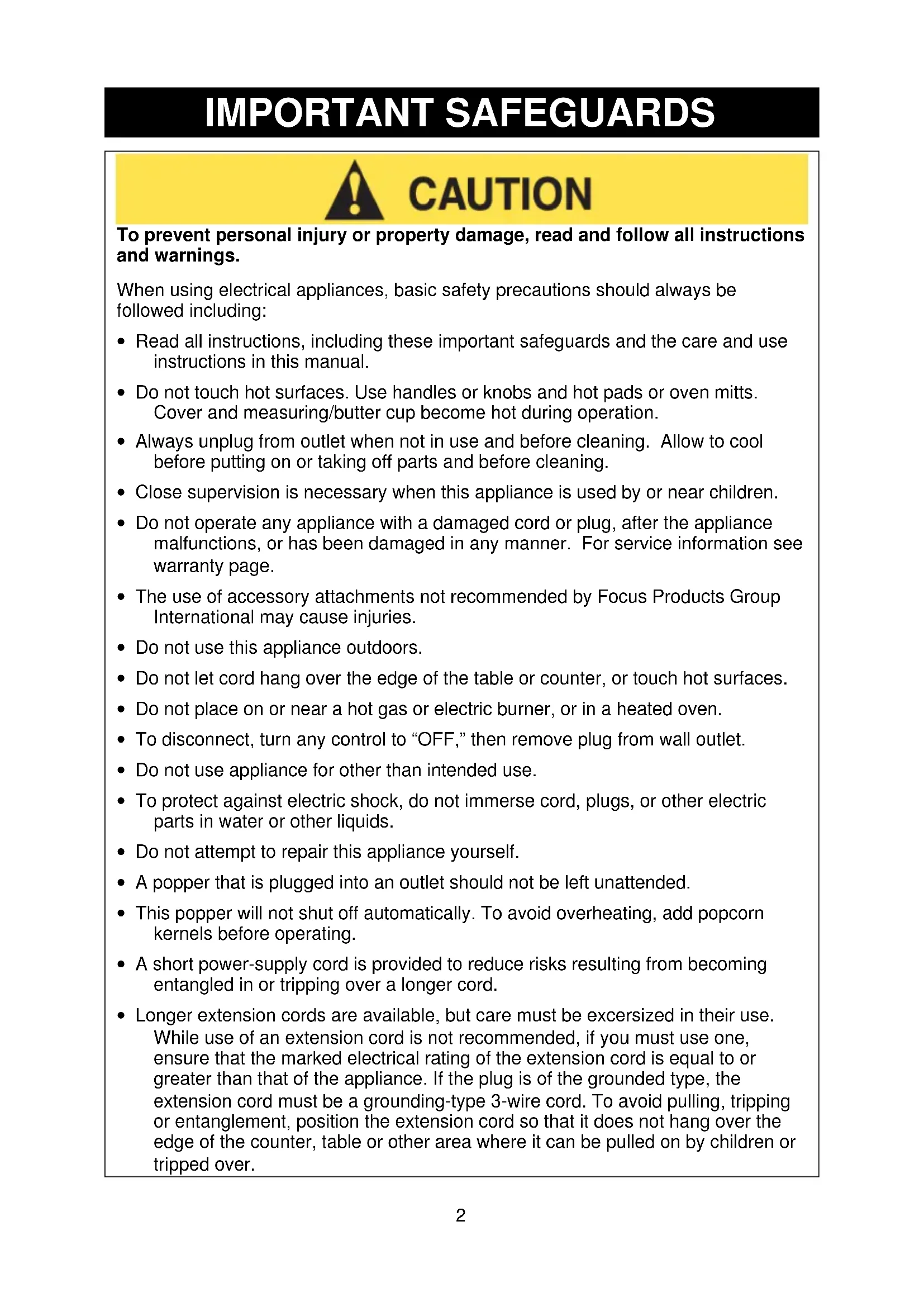 - A popper that is plugged into an outlet should not be left unattended.