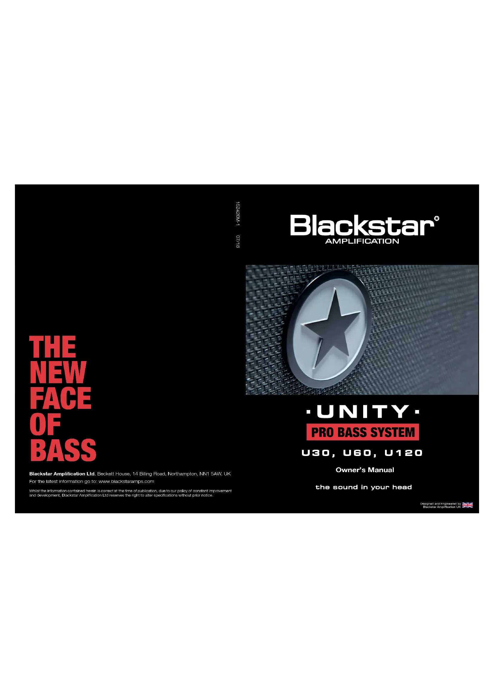 BASS U30, U60, U120 Blackstar Amplification Ltd, Beckett House, 14 Billing Road, Northampton, NN1 5AW, UK For the latest information go to: www.blackstaramps.com Whilst the information contained herein is correct at the time of publication, due to our policy of constant improvement and development, Blackstar Amplification Ltd reserves the right to alter specifications without prior notice. Designed and Engineered byBlackstar Amplification UK 152420M-1 07/18 Owner’s Manual