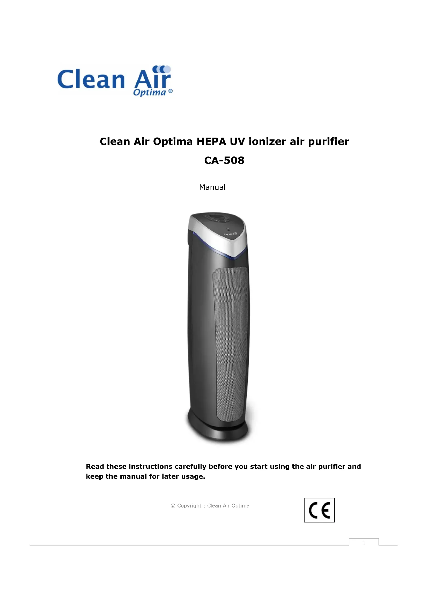 CA508 - Air purifier Clean Air Optima - Free user manual and instructions