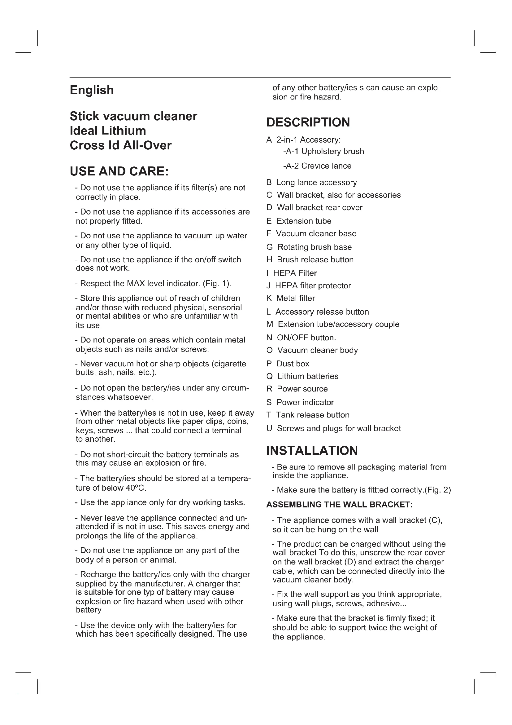 Ideal Lithium - Vacuum Cleaner TAURUS - Free user manual and instructions