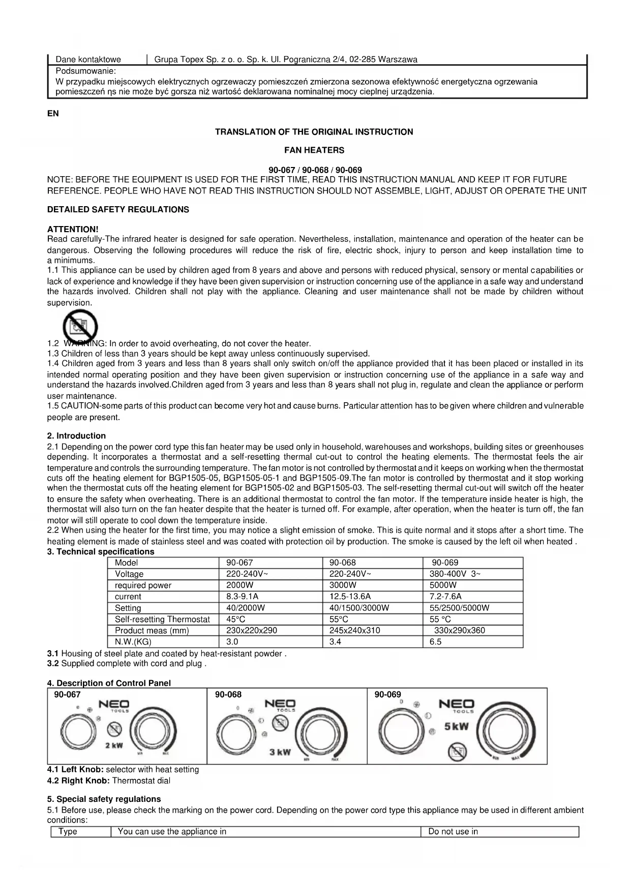 Download the instructions for your Heating in PDF format for free! Find your manual 90068 - NEO and take your electronic device back in hand. On this page are published all the documents necessary for the use of your device. 90068 by NEO.