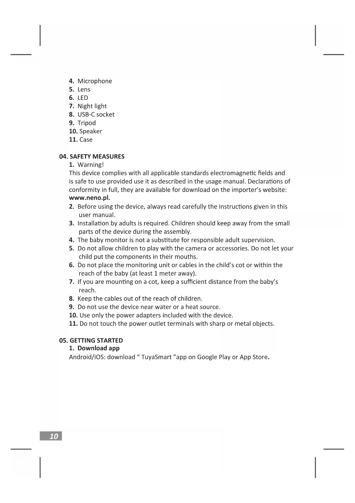 This device complies with all applicable standards electromagnec elds and is safe to use provided use it as described in the usage manual. Declaraons of conformity in full, they are available for download on the importer’s website: www.neno.pl.