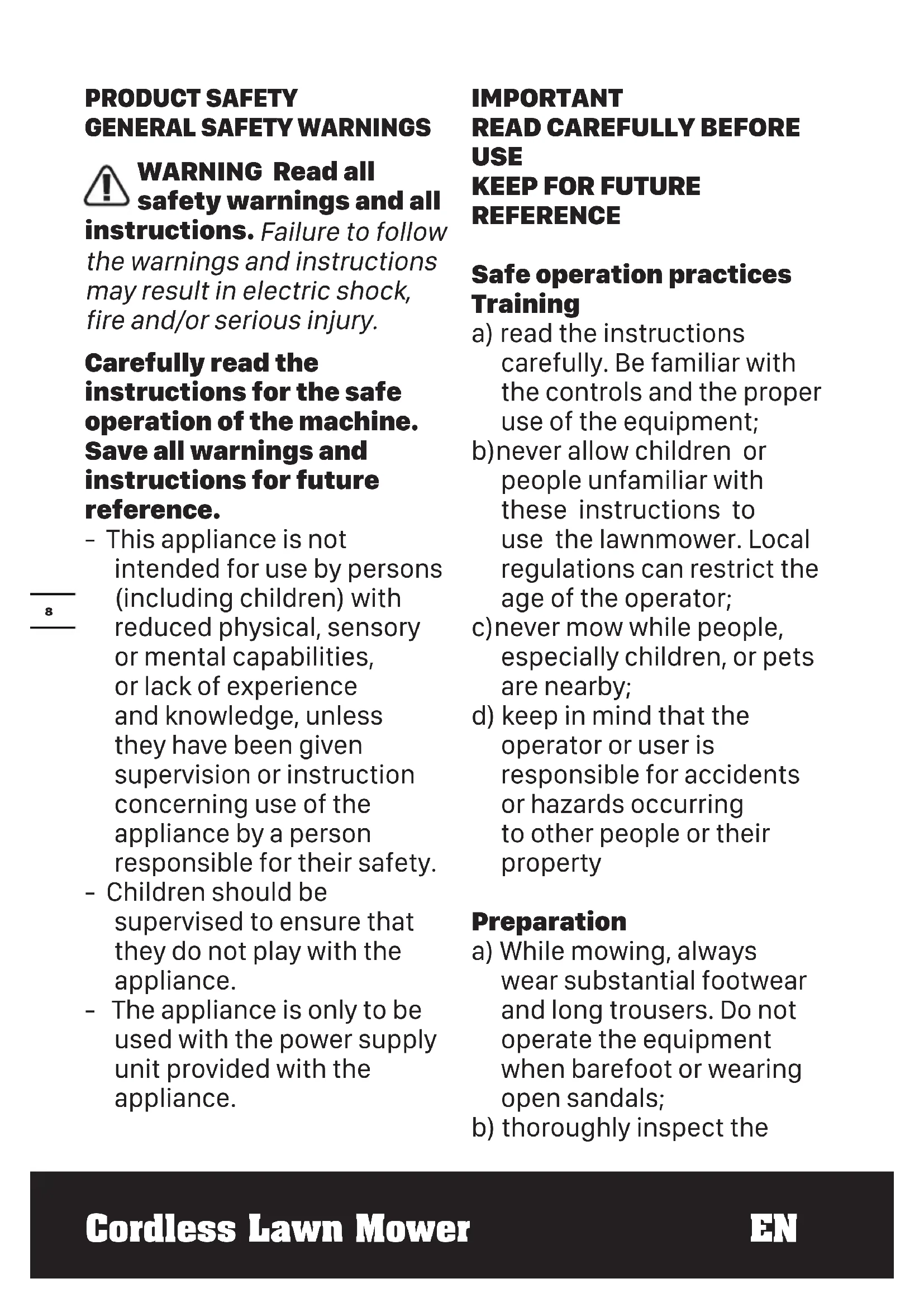 Cordless Lawn Mower EN PRODUCT SAFETY