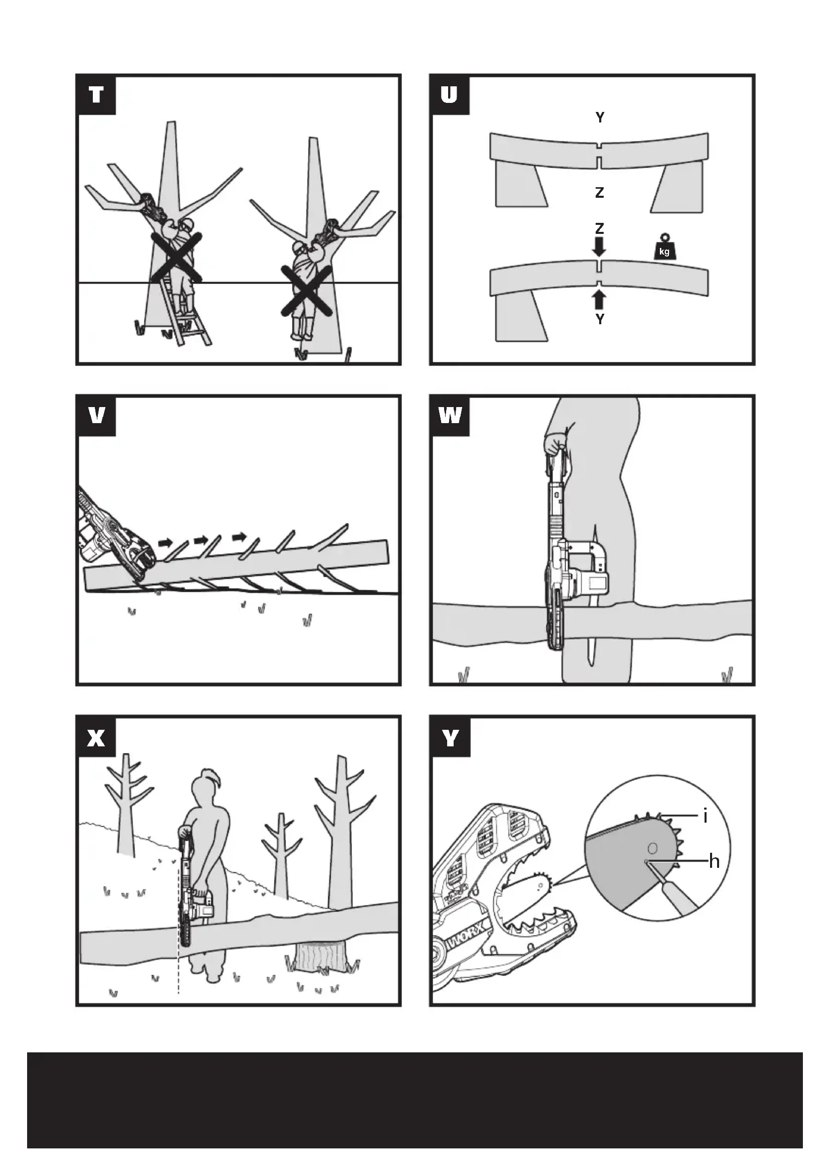 - Watch for shifting of wood or other forces19 Cordless Limbing and Trimming Chain Saw