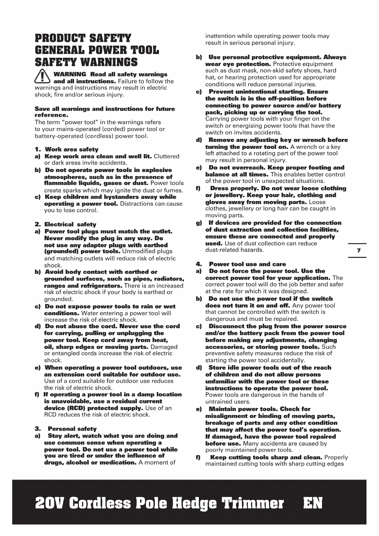 20V Cordless Pole Hedge Trimmer EN PRODUCT SAFETY