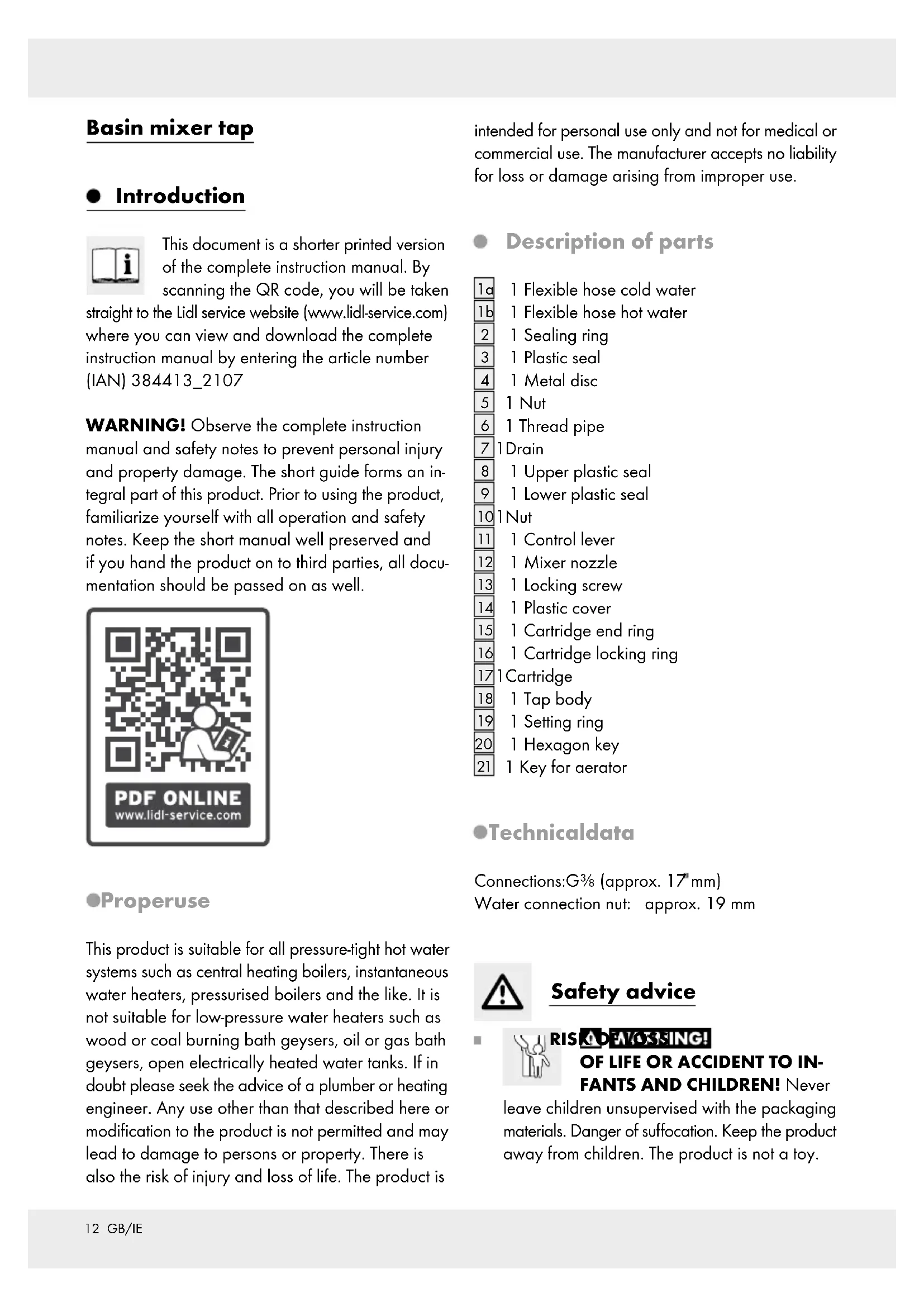 IAN 384413 - Faucet Livarno Lux - Free user manual and instructions