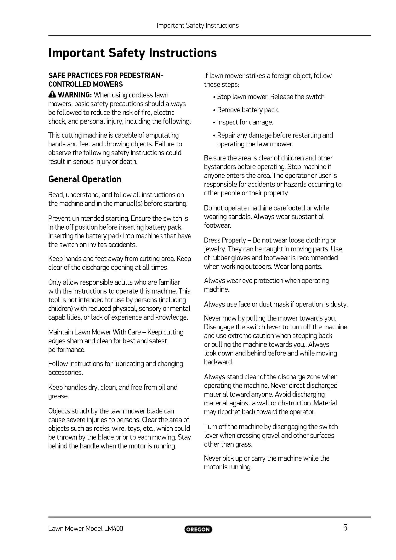 Download the instructions for your Lawn mower in PDF format for free! Find your manual LM400 - OREGON SCIENTIFIC and take your electronic device back in hand. On this page are published all the documents necessary for the use of your device. LM400 by OREGON SCIENTIFIC.