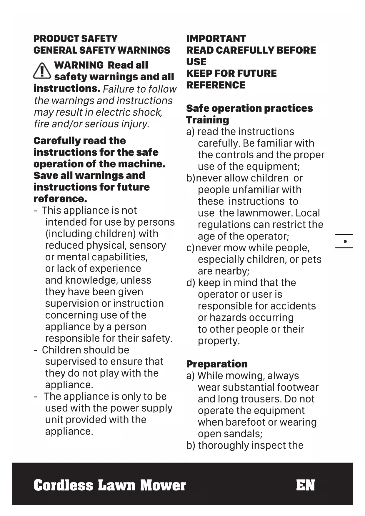 Cordless Lawn Mower EN PRODUCT SAFETY