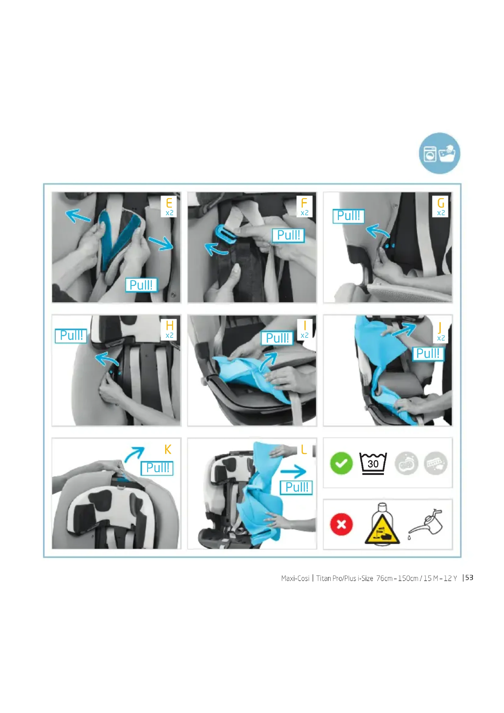 - The cover and crotch pad can be removed for washing. If the cover needs to be replaced at any time, only use ocial Maxi-Cosi cover because it constitutes an integral part of the restraint performance. EN56