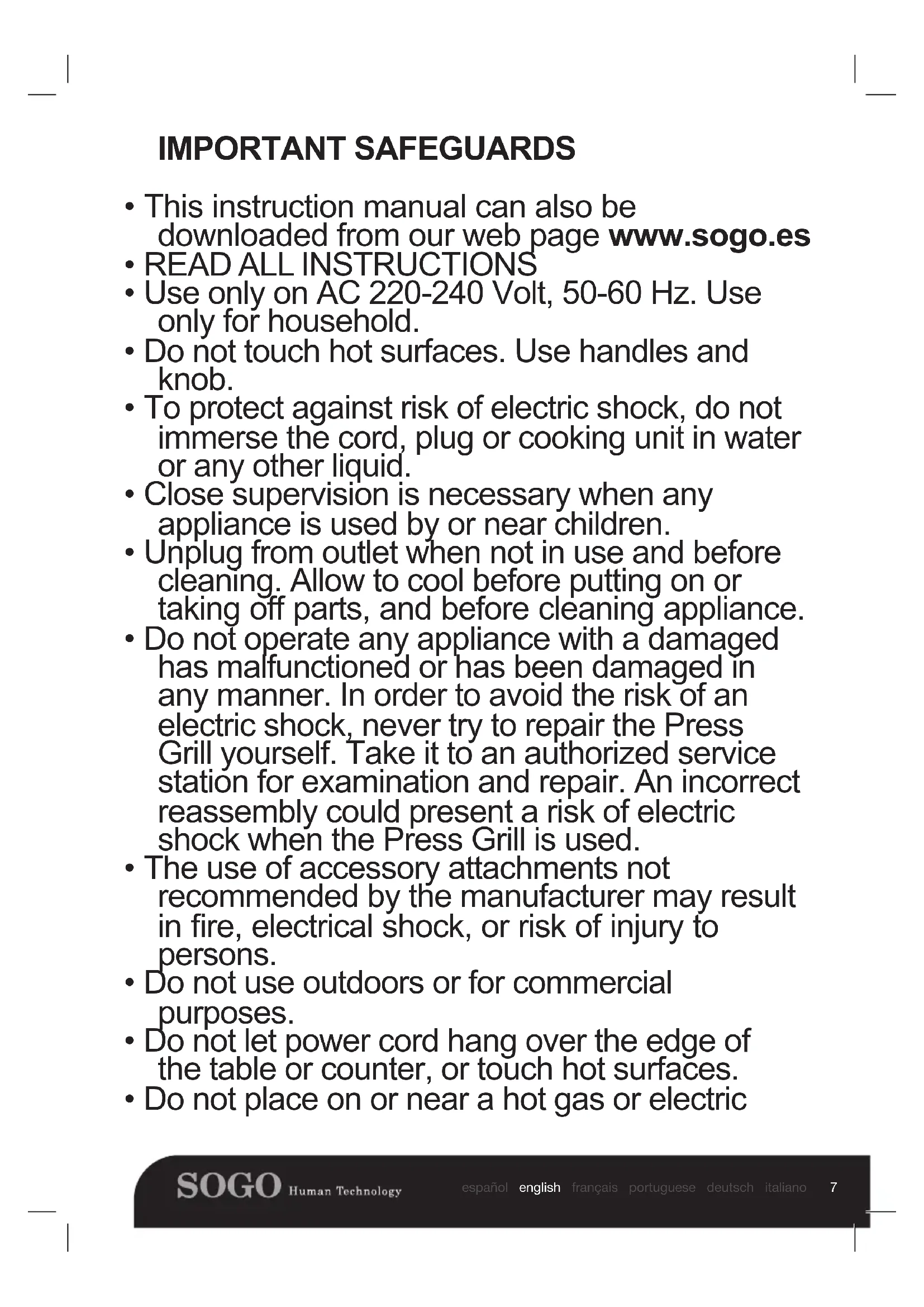 - This instruction manual can also be downloaded from our web page www.sogo.es
