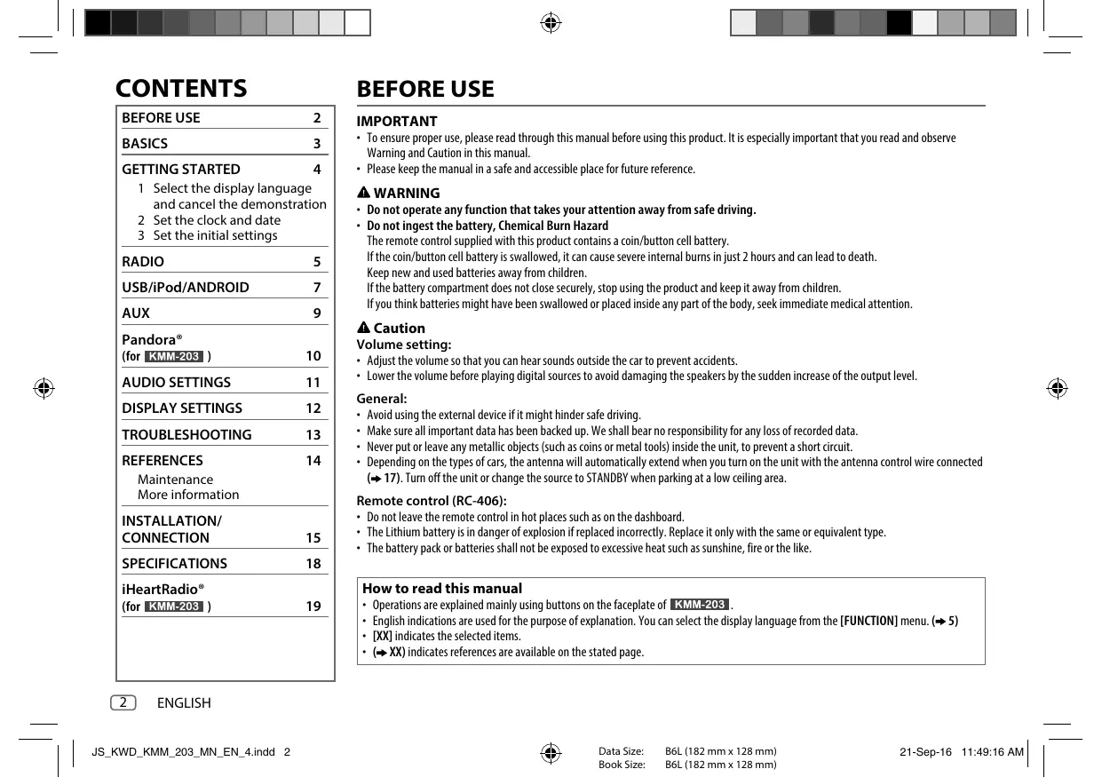 Subject to change without notice. ENGLISH JS_KWD_KMM_203_MN_EN_4.indd 18 Data Size: Book Size: B6L (182 mm x 128 mm) B6L (182 mm x 128 mm) 21-Sep-16 11:49:37 AM iHeartRadio® (for