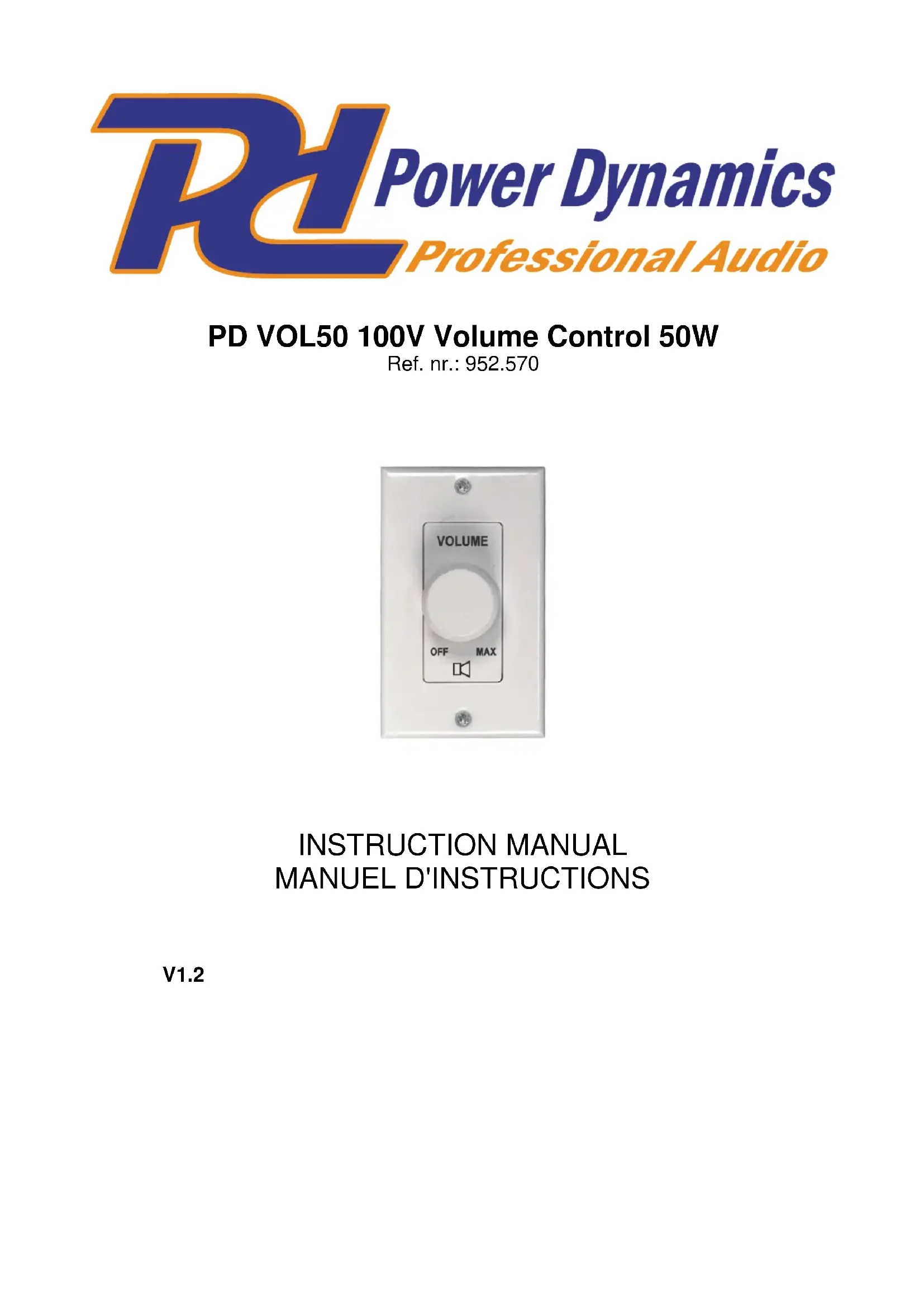Download the instructions for your Audio volume controller in PDF format for free! Find your manual PDVC50 - Power Dynamics and take your electronic device back in hand. On this page are published all the documents necessary for the use of your device. PDVC50 by Power Dynamics.