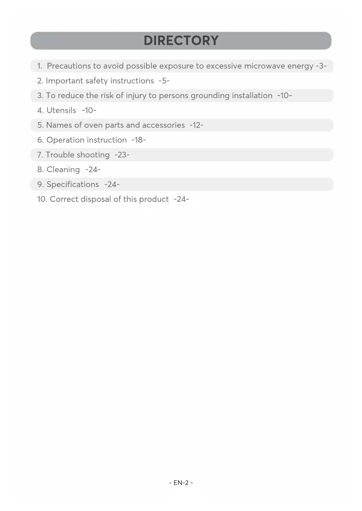 1. Precautions to avoid possible exposure to excessive microwave energy -3-