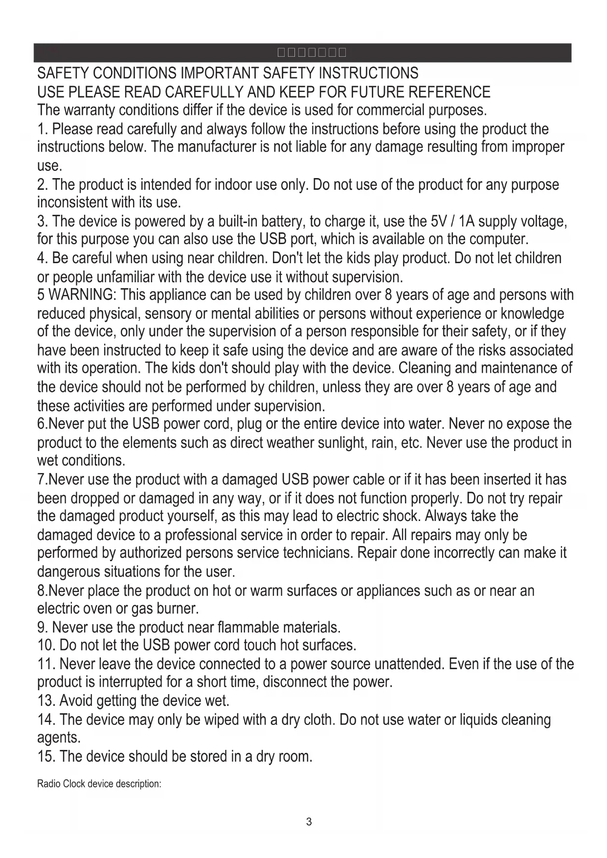14. The device may only be wiped with a dry cloth. Do not use water or liquids cleaning
